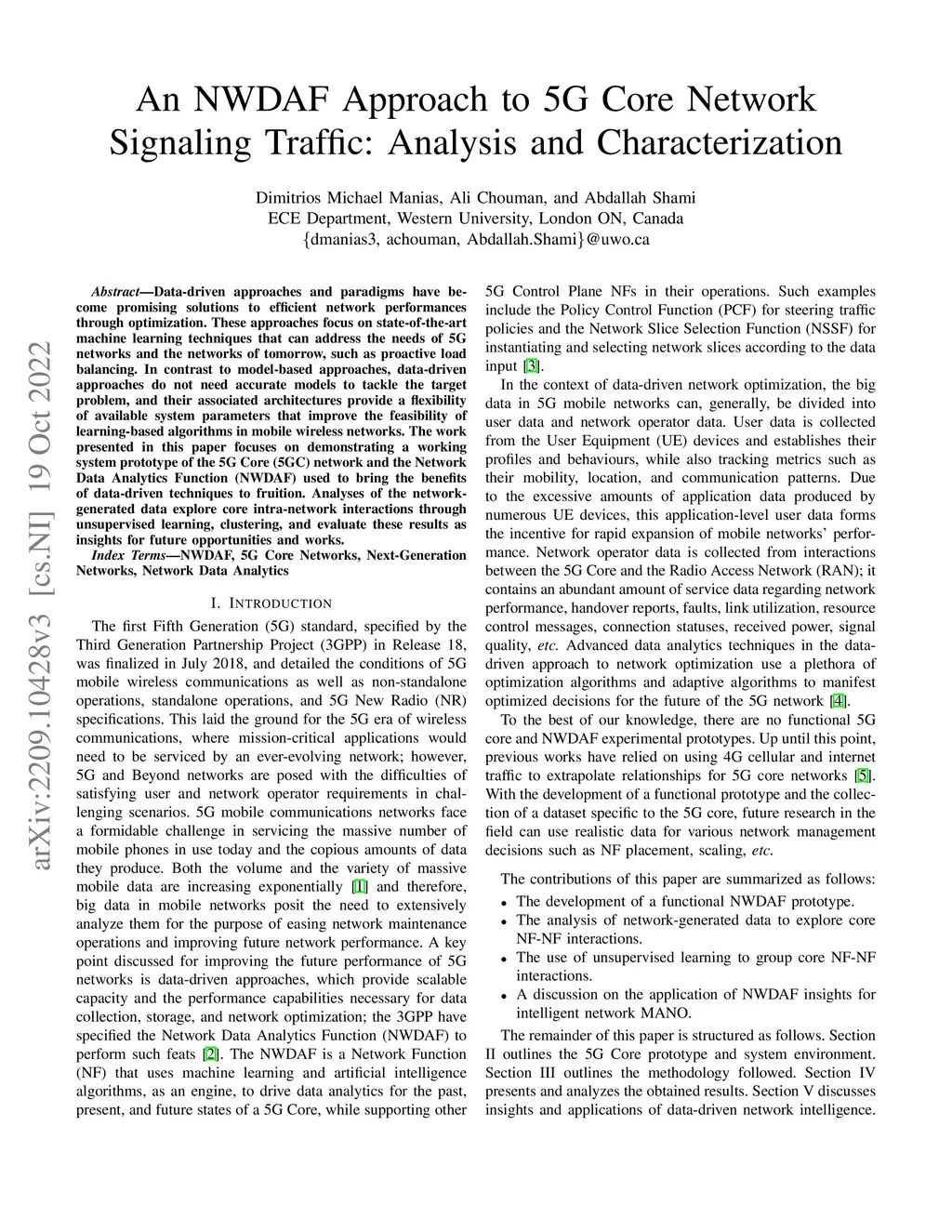 An NWDAF Approach to 5G Core Network Signaling Traffic: Analysis and Characterization