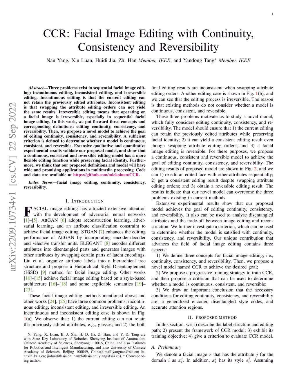 CCR: Facial Image Editing with Continuity, Consistency and Reversibility