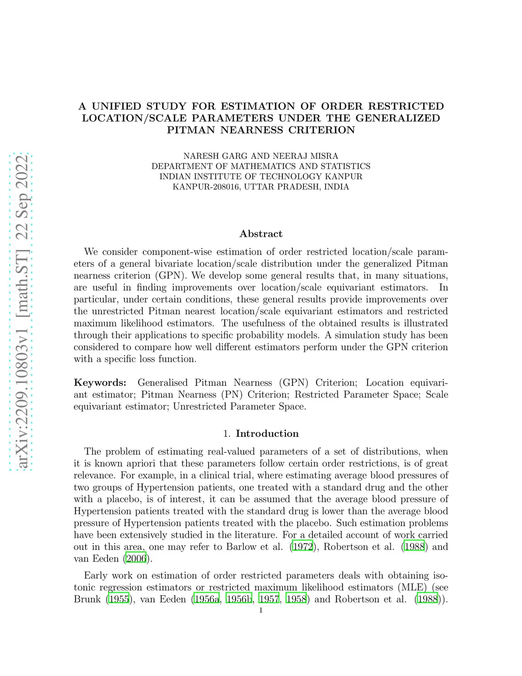 parameters under the generalized Pitman nearness criterion