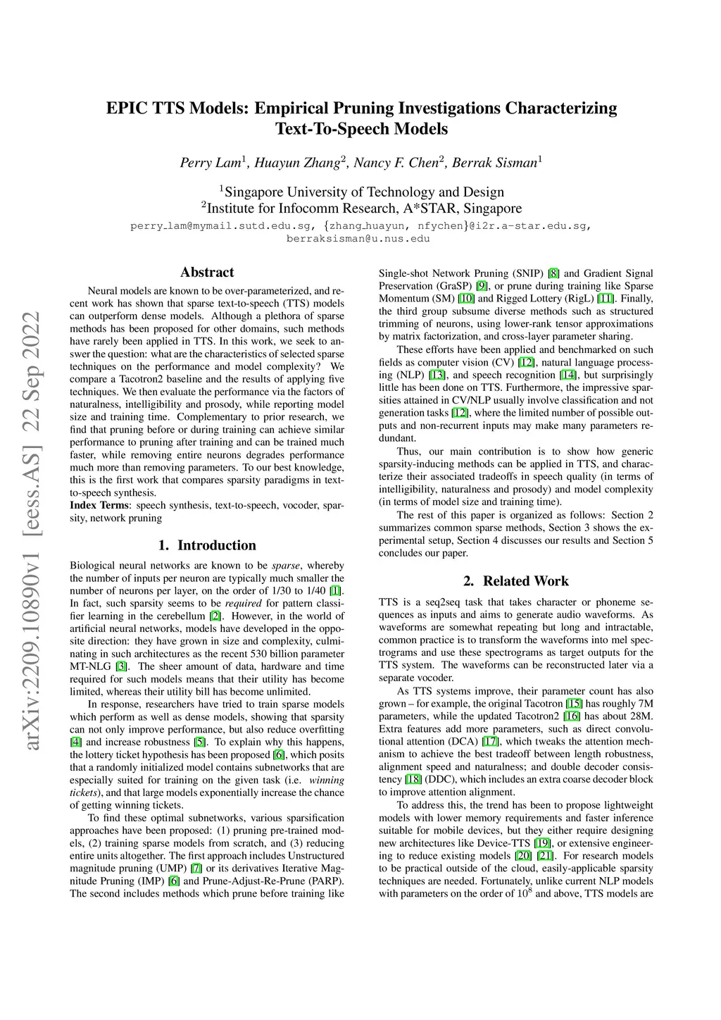 EPIC TTS Models: Empirical Pruning Investigations Characterizing