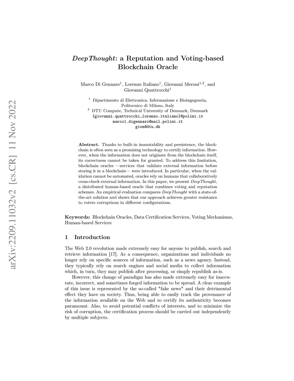 DeepThought: a Reputation and Voting-based Blockchain Oracle
