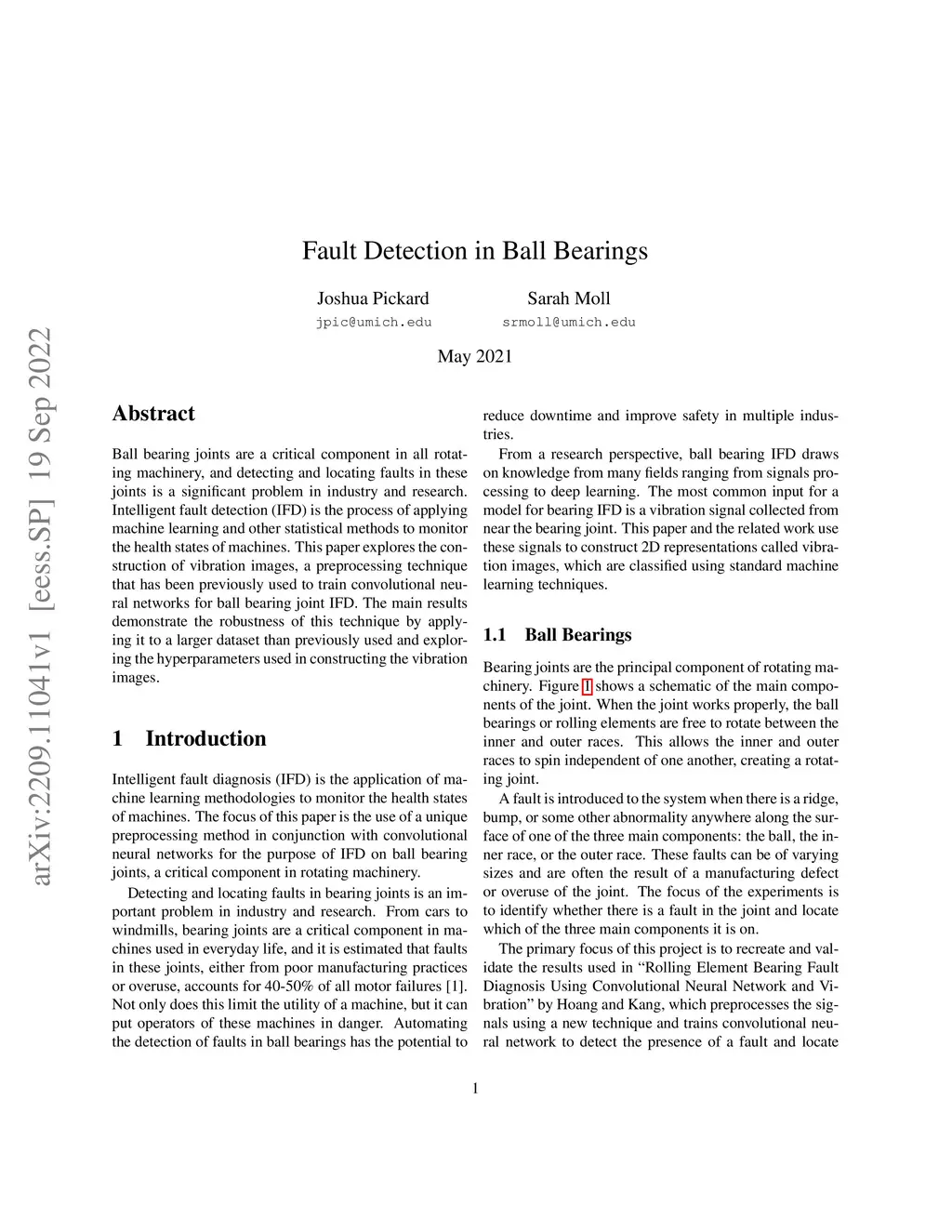 Fault Detection in Ball Bearings