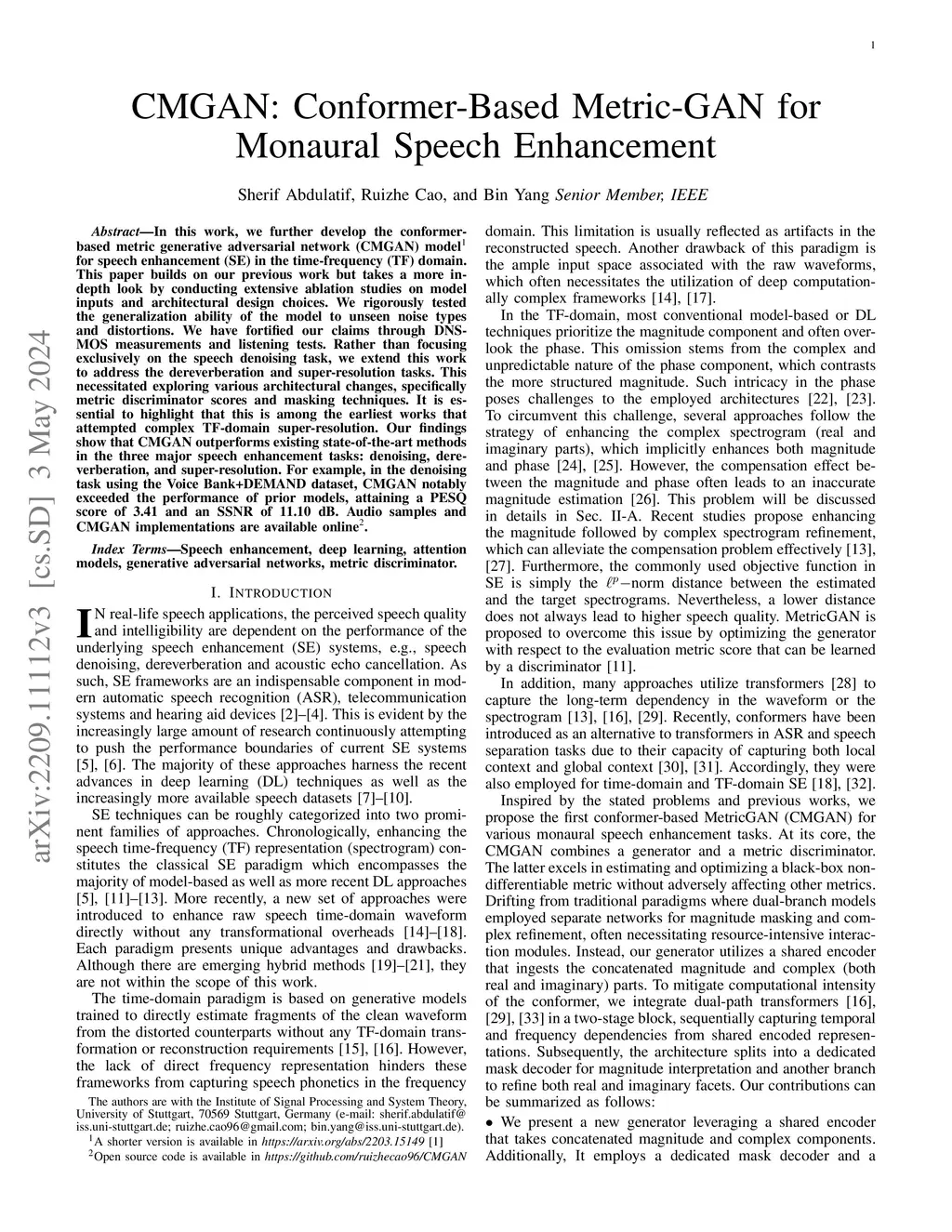 CMGAN: Conformer-Based Metric-GAN for Monaural Speech Enhancement