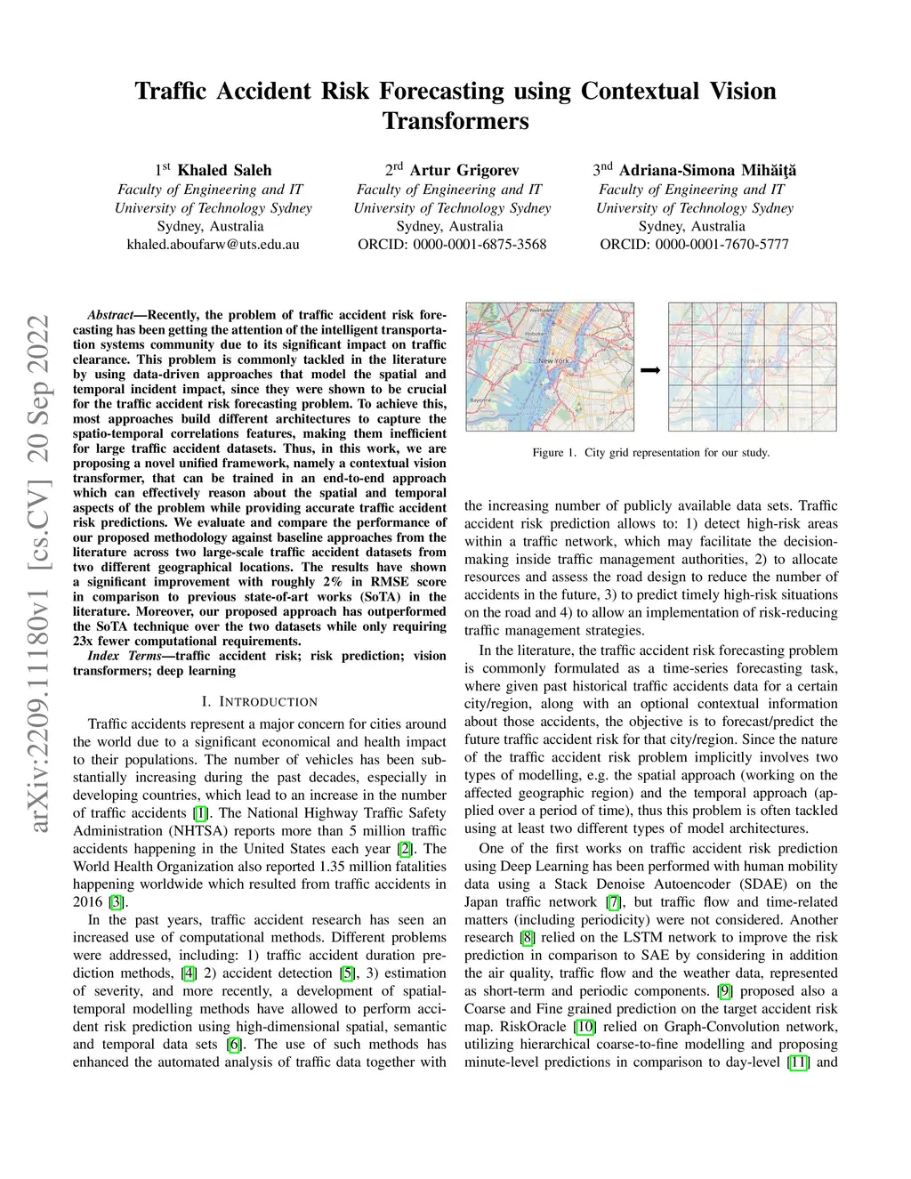 Traffic Accident Risk Forecasting using Contextual Vision Transformers
