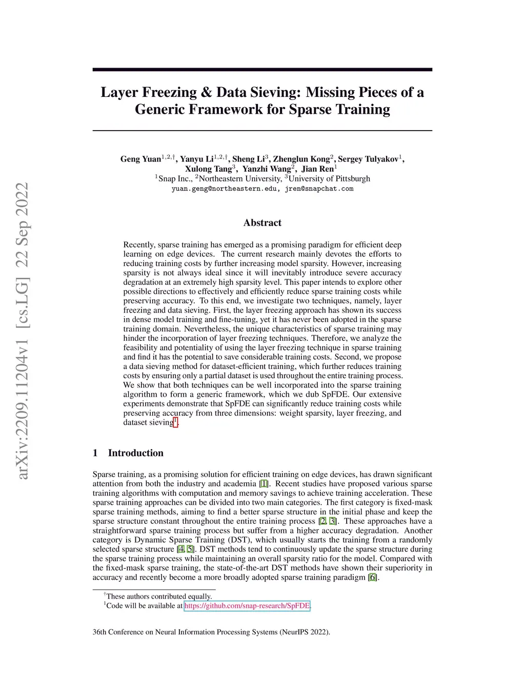 Recently, sparse training has emerged as a promising paradigm for efficient deep learning on edge devices. The current research mainly devotes efforts to reducing training costs by further increasing model sparsity. However, increasing sparsity is not always ideal since it will inevitably introduce severe accuracy degradation at an extremely high sparsity level. This paper intends to explore other possible directions to effectively and efficiently reduce sparse training costs while preserving accuracy. To this end, we investigate two techniques, namely, layer freezing and data sieving. First, the layer freezing approach has shown its success in dense model training and fine-tuning, yet it has never been adopted in the sparse training domain. Nevertheless, the unique characteristics of sparse training may hinder the incorporation of layer freezing techniques. Therefore, we analyze the feasibility and potentiality of using the layer freezing technique in sparse training and find it has the potential to save considerable training costs. Second, we propose a data sieving method for dataset-efficient training, which further reduces training costs by ensuring only a partial dataset is used throughout the entire training process. We show that both techniques can be well incorporated into the sparse training algorithm to form a generic framework, which we dub SpFDE. Our extensive experiments demonstrate that SpFDE can significantly reduce training costs while preserving accuracy from three dimensions: weight sparsity, layer freezing, and dataset sieving.