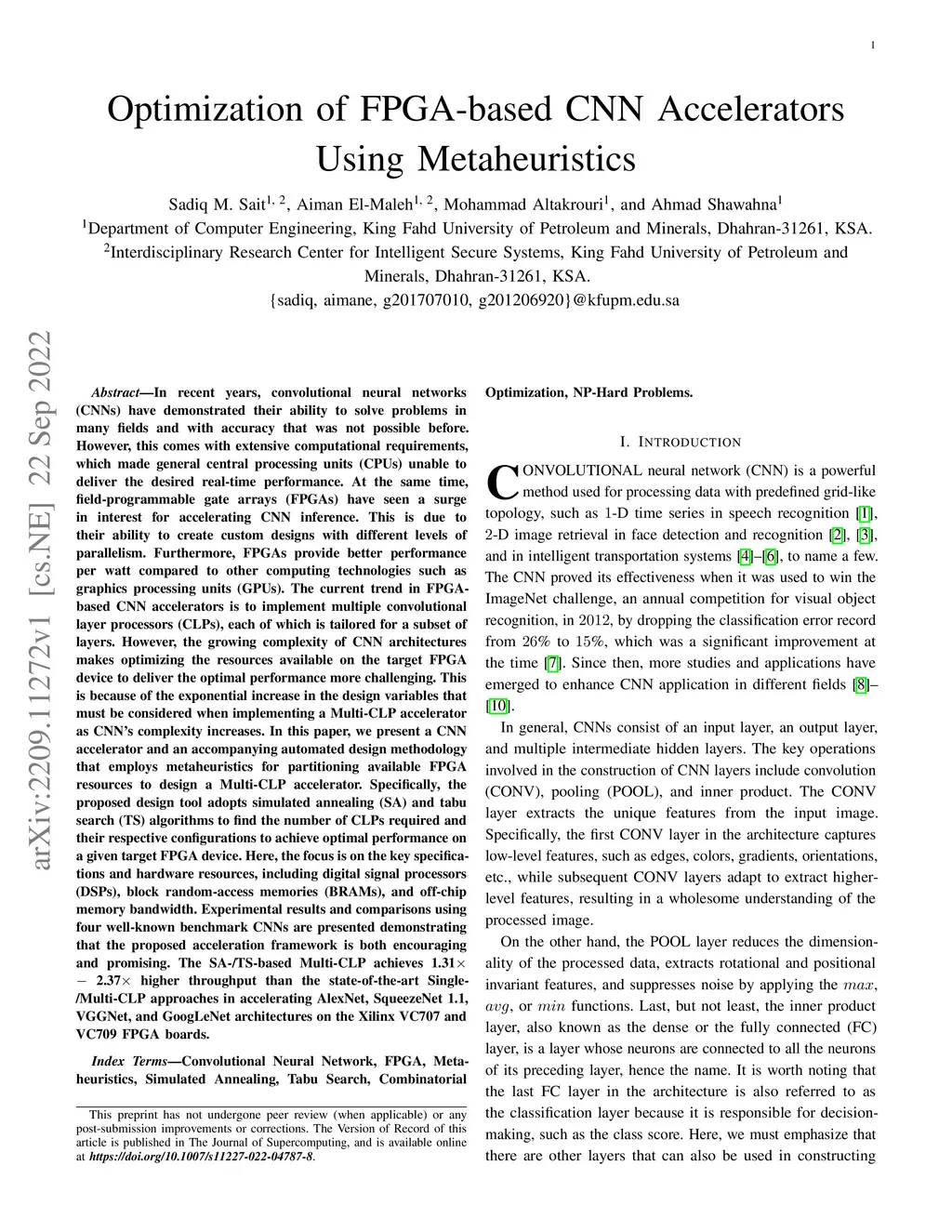 Optimization of FPGA-based CNN Accelerators Using Metaheuristics