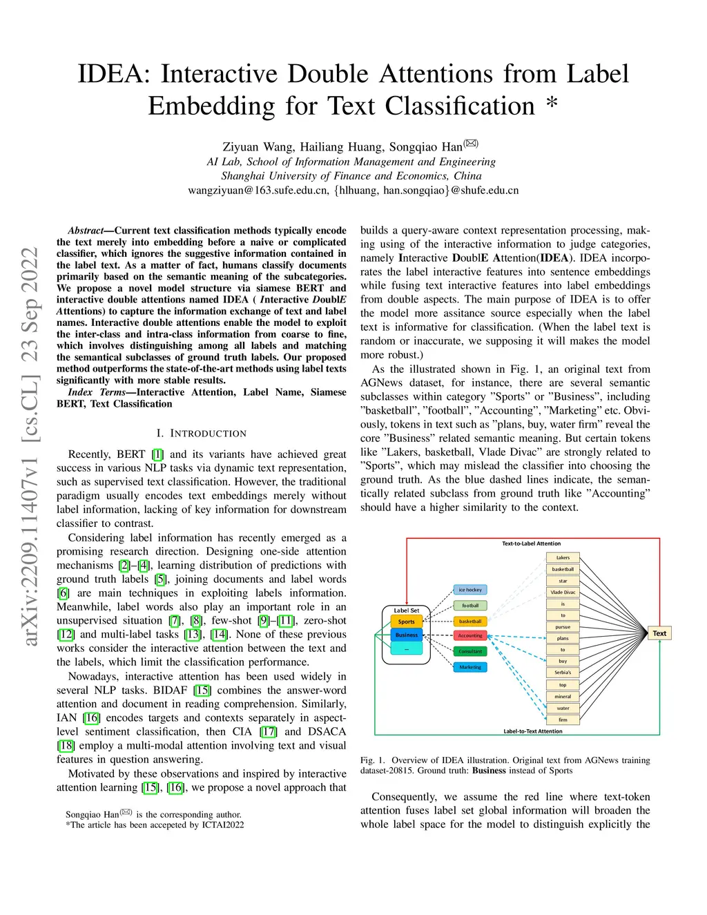 IDEA: Interactive DoublE Attentions from Label Embedding for Text