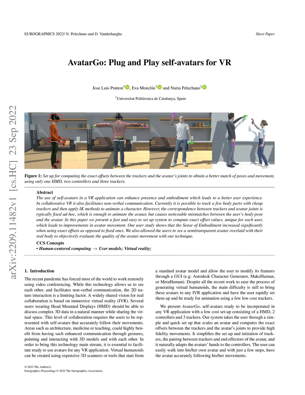 The use of self-avatars in a VR application can enhance presence and embodiment which leads to a better user experience. In collaborative VR it also facilitates non-verbal communication. Currently it is possible to track a few body parts with cheap trackers and then apply IK methods to animate a character. However, the correspondence between trackers and avatar joints is typically fixed ad-hoc, which is enough to animate the avatar, but causes noticeable mismatches between the user's body pose and the avatar. In this paper we present a fast and easy to set up system to compute exact offset values, unique for each user, which leads to improvements in avatar movement. Our user study shows that the Sense of Embodiment increased significantly when using exact offsets as opposed to fixed ones. We also allowed the users to see a semitransparent avatar overlaid with their real body to objectively evaluate the quality of the avatar movement with our technique.