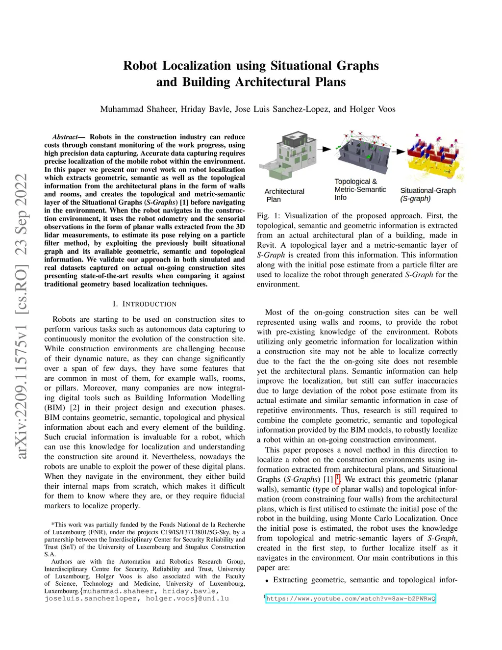 Robots in the construction industry can reduce costs through constant monitoring of the work progress, using high precision data capturing. Accurate data capturing requires precise localization of the mobile robot within the environment. In this paper we present our novel work on robot localization which extracts geometric, semantic as well as the topological information from the architectural plans in the form of walls and rooms, and creates the topological and metric-semantic layer of the Situational Graphs (S-Graphs) before navigating in the environment. When the robot navigates in the construction environment, it uses the robot odometry and the sensorial observations in the form of planar walls extracted from the 3D lidar measurements, to estimate its pose relying on a particle filter method, by exploiting the previously built situational graph and its available geometric, semantic and topological information. We validate our approach in both simulated and real datasets captured on actual on-going construction sites presenting state-of-the-art results when comparing it against traditional geometry based localization techniques.