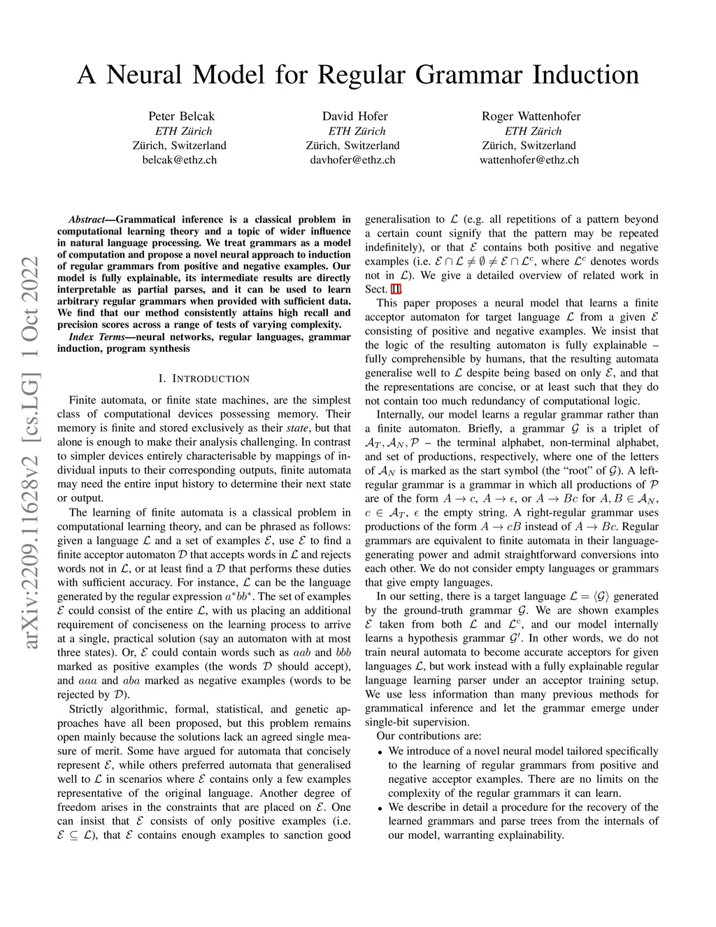 Grammatical inference is a classical problem in computational learning theory and a topic of wider influence in natural language processing. We treat grammars as a model of computation and propose a novel neural approach to induction of regular grammars from positive and negative examples. Our model is fully explainable, its intermediate results are directly interpretable as partial parses, and it can be used to learn arbitrary regular grammars when provided with sufficient data. We find that our method consistently attains high recall and precision scores across a range of tests of varying complexity.