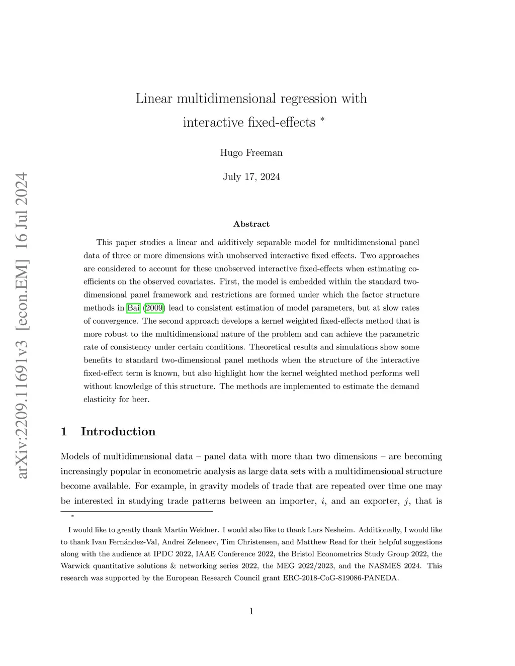 Linear Multidimensional Regression with Interactive Fixed-Effects