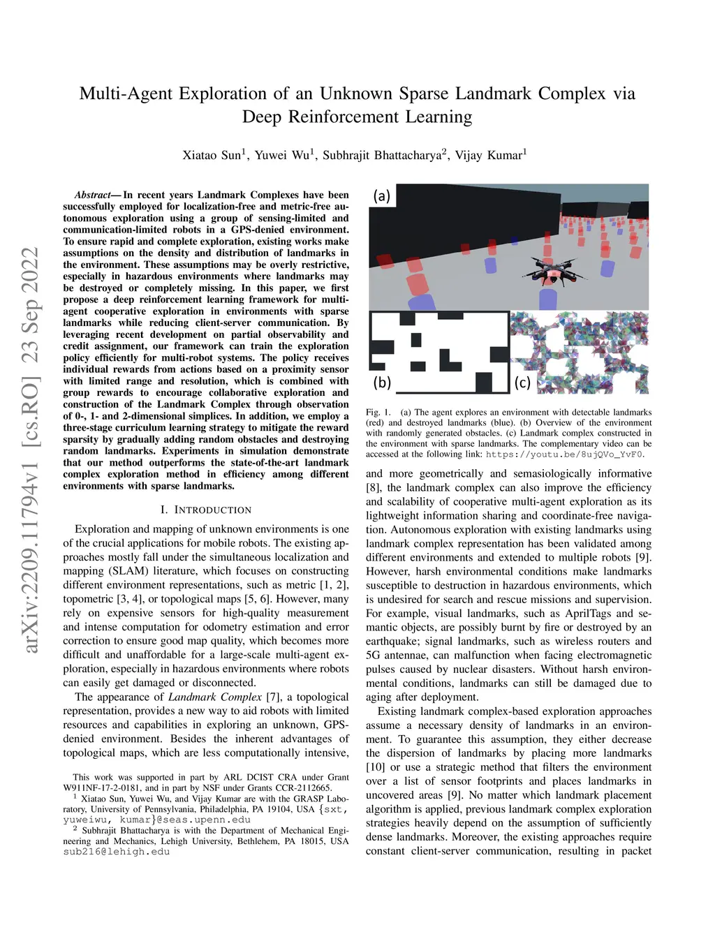 Multi-Agent Exploration of an Unknown Sparse Landmark Complex via Deep
