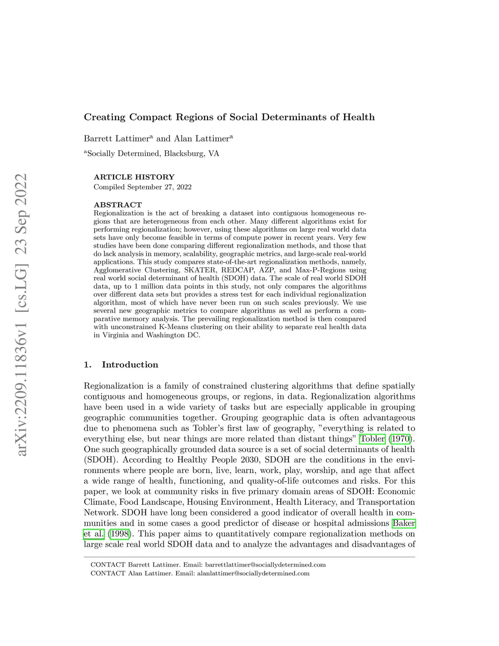 Creating Compact Regions of Social Determinants of Health