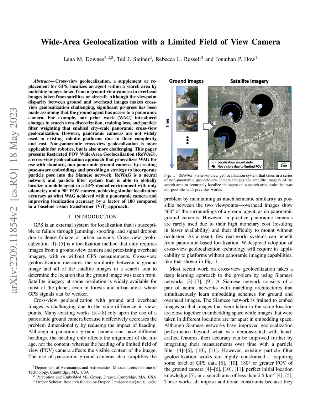 Wide-Area Geolocalization with a Limited Field of View Camera