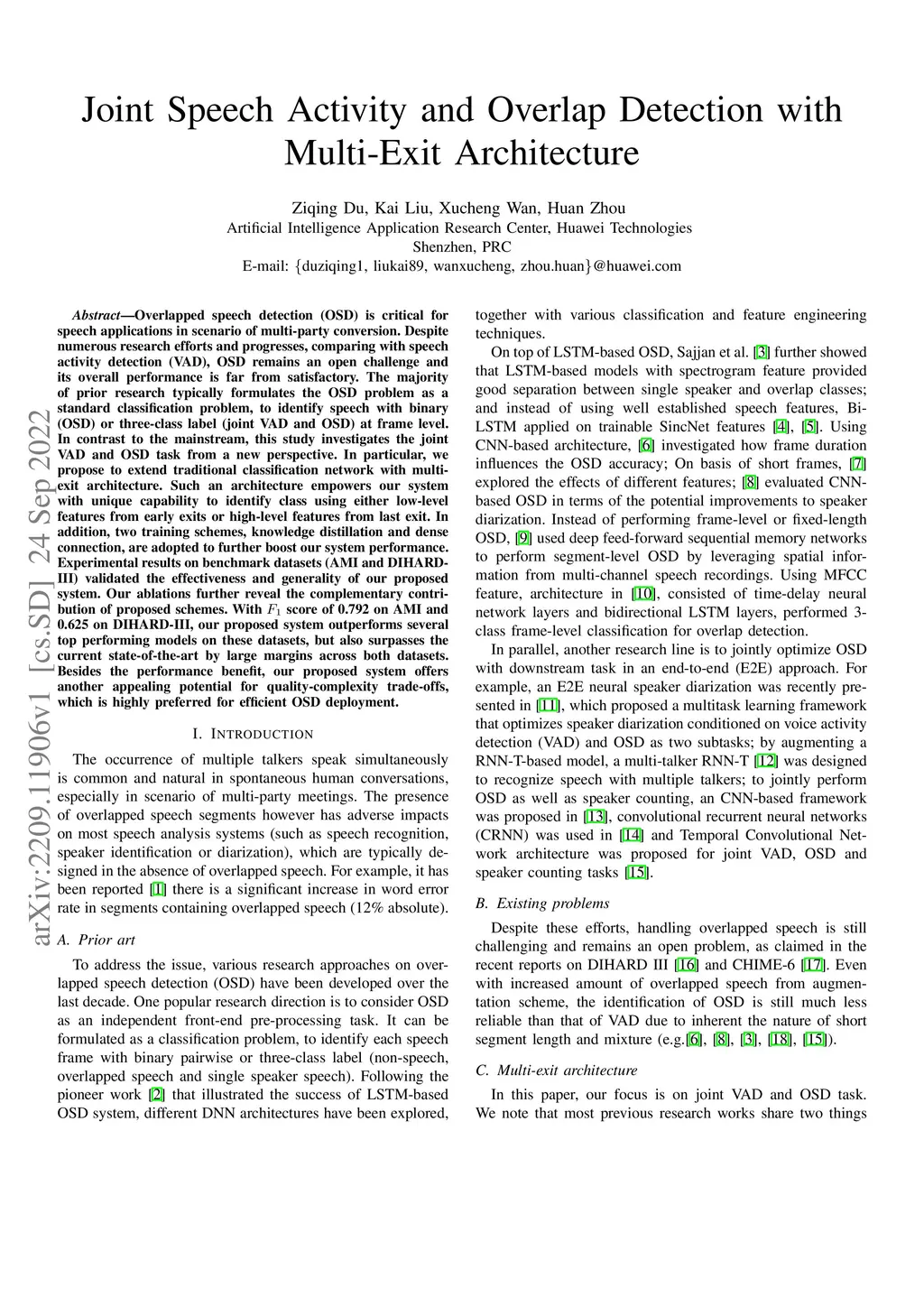 Joint Speech Activity and Overlap Detection with Multi-Exit Architecture