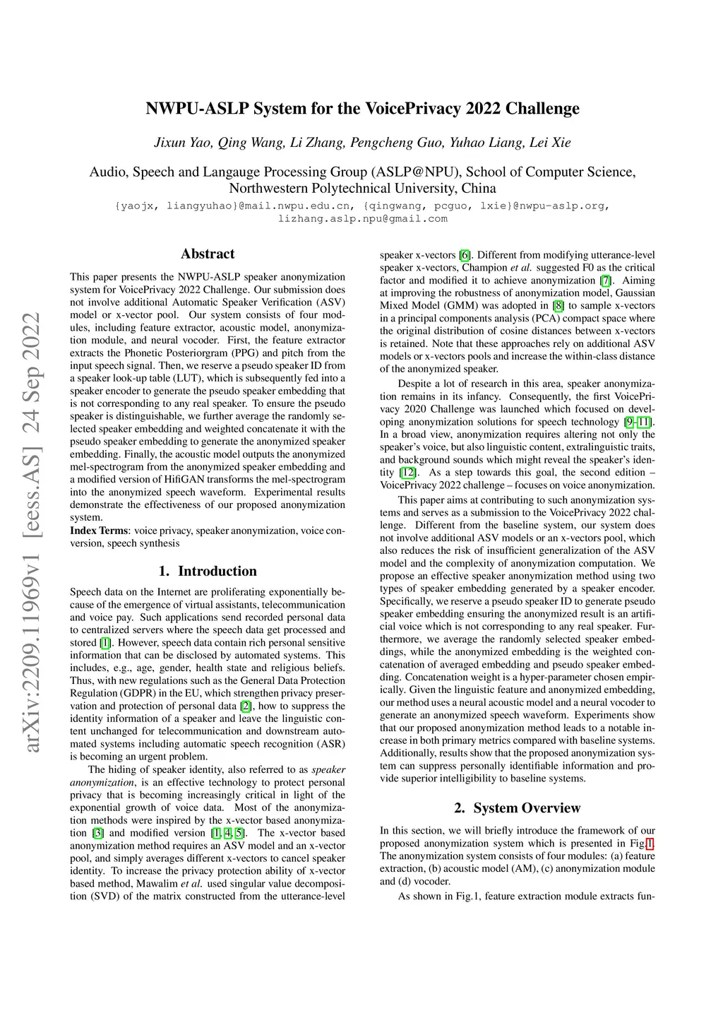 NWPU-ASLP System for the VoicePrivacy 2022 Challenge