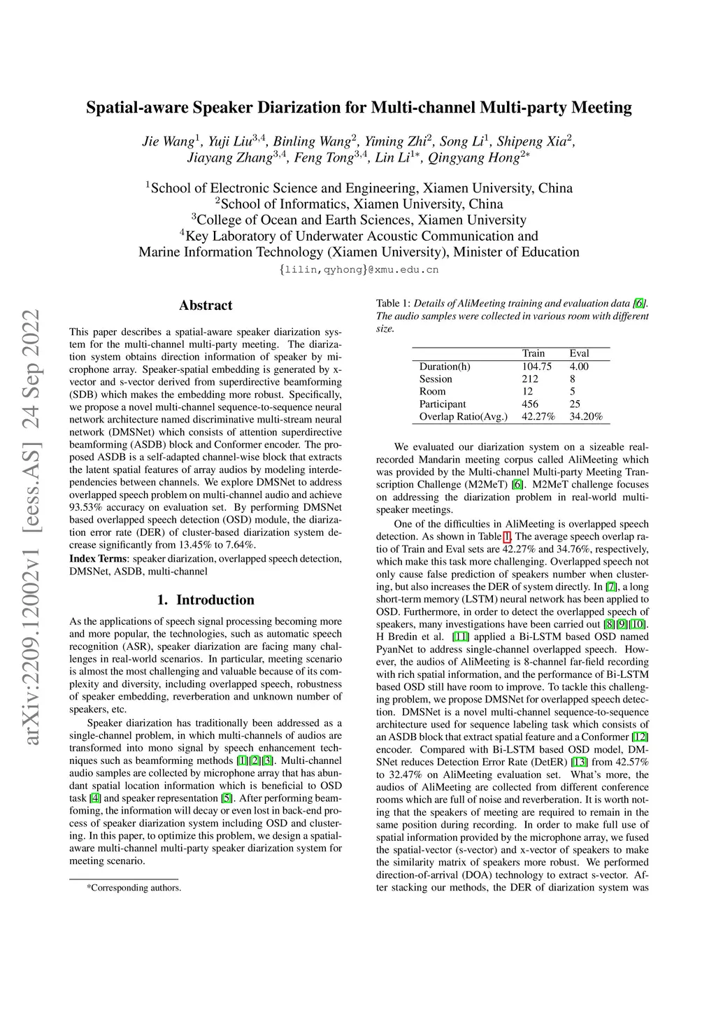 This paper describes a spatial-aware speaker diarization system for the multi-channel multi-party meeting. The diarization system obtains direction information of speaker by microphone array. Speaker spatial embedding is generated by xvector and s-vector derived from superdirective beamforming (SDB) which makes the embedding more robust. Specifically, we propose a novel multi-channel sequence-to-sequence neural network architecture named discriminative multi-stream neural network (DMSNet) which consists of attention superdirective beamforming (ASDB) block and Conformer encoder. The proposed ASDB is a self-adapted channel-wise block that extracts the latent spatial features of array audios by modeling interdependencies between channels. We explore DMSNet to address overlapped speech problem on multi-channel audio and achieve 93.53% accuracy on evaluation set. By performing DMSNet based overlapped speech detection (OSD) module, the diarization error rate (DER) of cluster-based diarization system decrease significantly from 13.45% to 7.64%.