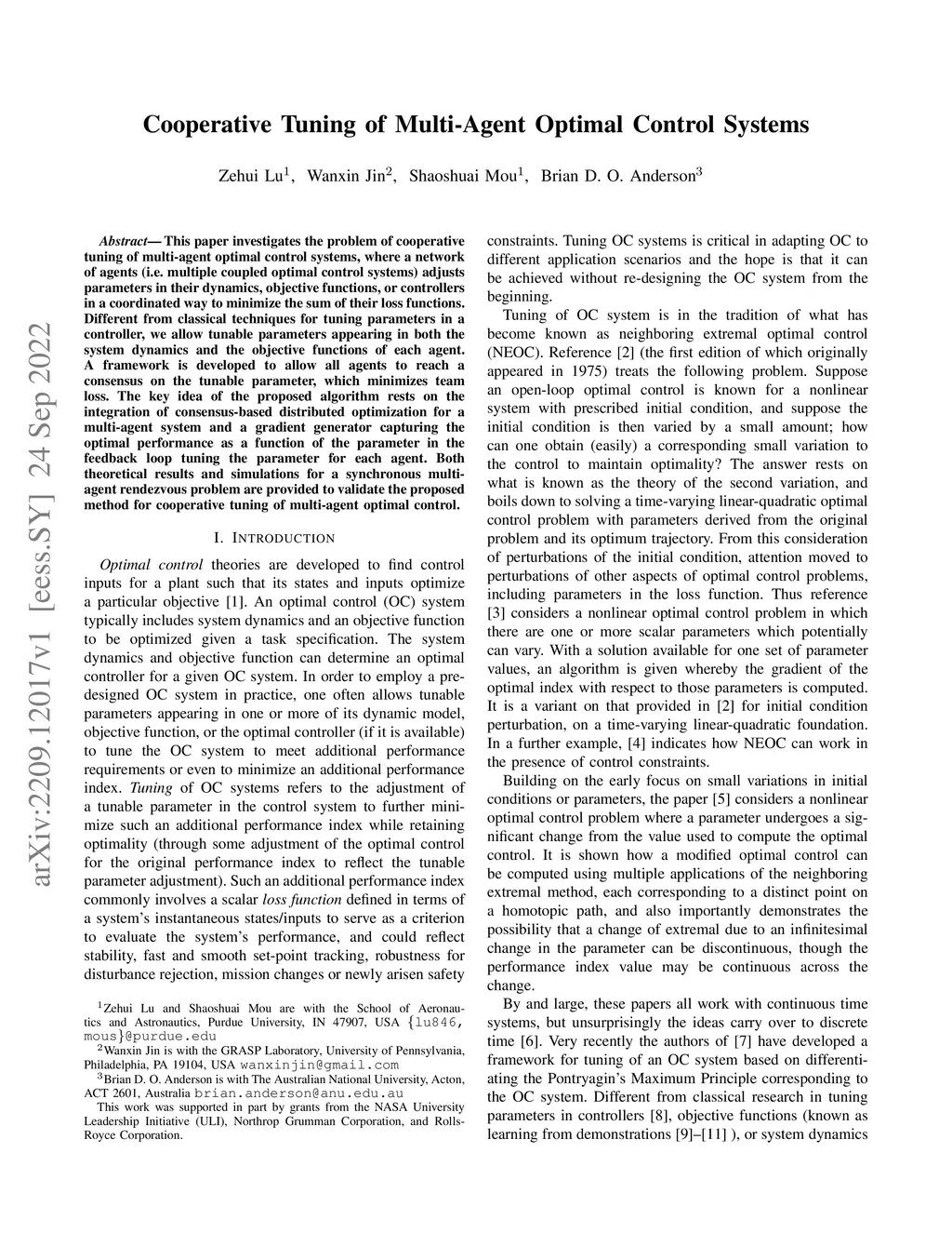 Cooperative Tuning of Multi-Agent Optimal Control Systems