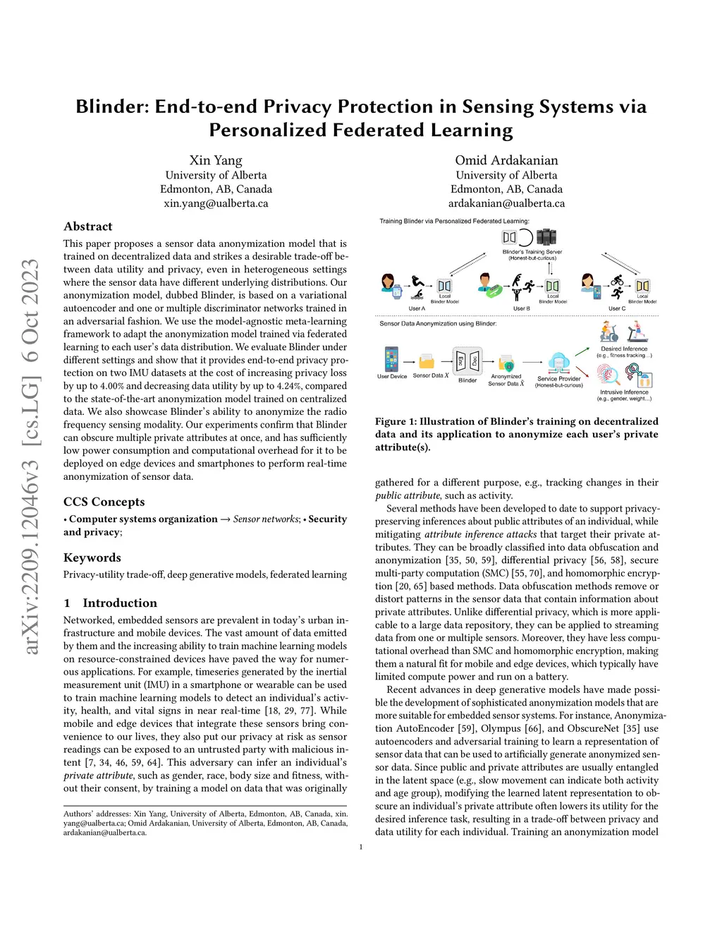 Blinder: End-to-end Privacy Protection in Sensing Systems via