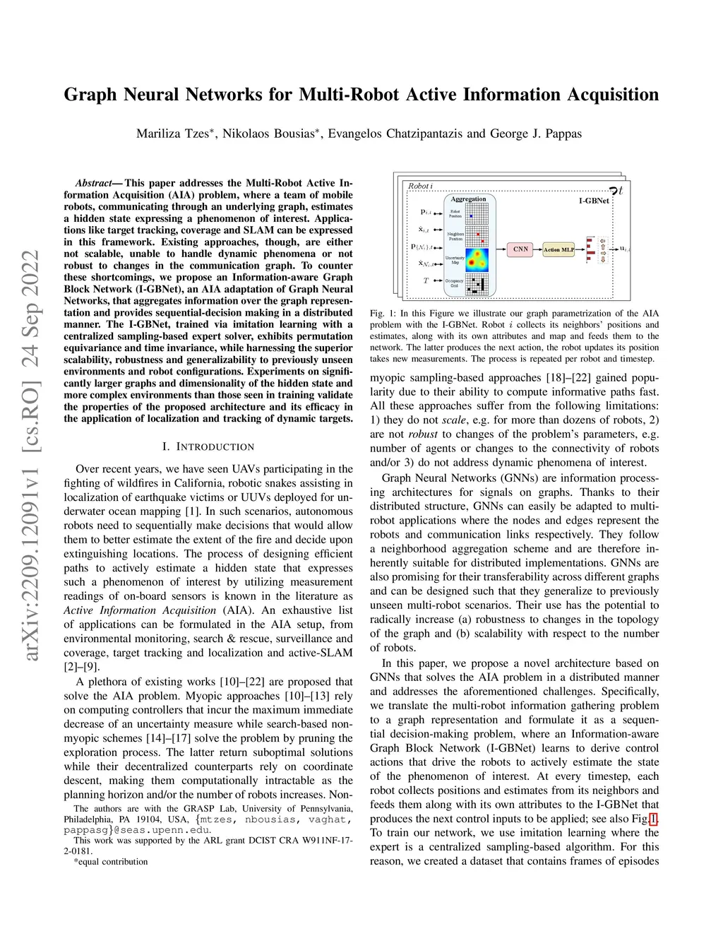This paper addresses the Multi-Robot Active Information Acquisition (AIA) problem, where a team of mobile robots, communicating through an underlying graph, estimates a hidden state expressing a phenomenon of interest. Applications like target tracking, coverage and SLAM can be expressed in this framework. Existing approaches, though, are either not scalable, unable to handle dynamic phenomena or not robust to changes in the communication graph. To counter these shortcomings, we propose an Information-aware Graph Block Network (I-GBNet), an AIA adaptation of Graph Neural Networks, that aggregates information over the graph representation and provides sequential-decision making in a distributed manner. The I-GBNet, trained via imitation learning with a centralized sampling-based expert solver, exhibits permutation equivariance and time invariance, while harnessing the superior scalability, robustness and generalizability to previously unseen environments and robot configurations. Experiments on significantly larger graphs and dimensionality of the hidden state and more complex environments than those seen in training validate the properties of the proposed architecture and its efficacy in the application of localization and tracking of dynamic targets.
