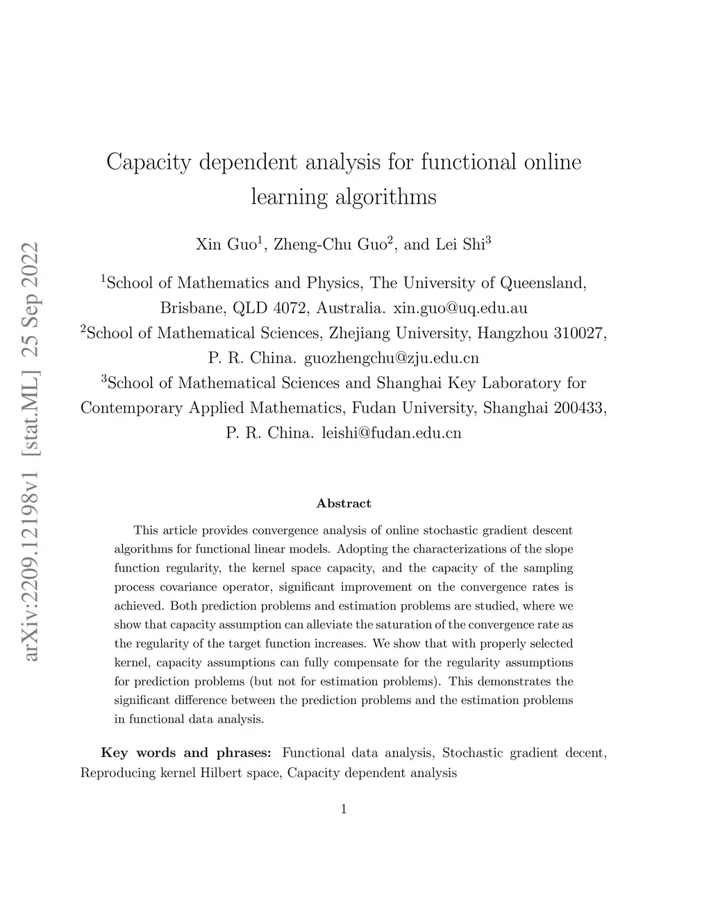 This article provides convergence analysis of online stochastic gradient descent algorithms for functional linear models. Adopting the characterizations of the slope function regularity, the kernel space capacity, and the capacity of the sampling process covariance operator, significant improvement on the convergence rates is achieved. Both prediction problems and estimation problems are studied, where we show that capacity assumption can alleviate the saturation of the convergence rate as the regularity of the target function increases. We show that with properly selected kernel, capacity assumptions can fully compensate for the regularity assumptions for prediction problems (but not for estimation problems). This demonstrates the significant difference between the prediction problems and the estimation problems in functional data analysis.