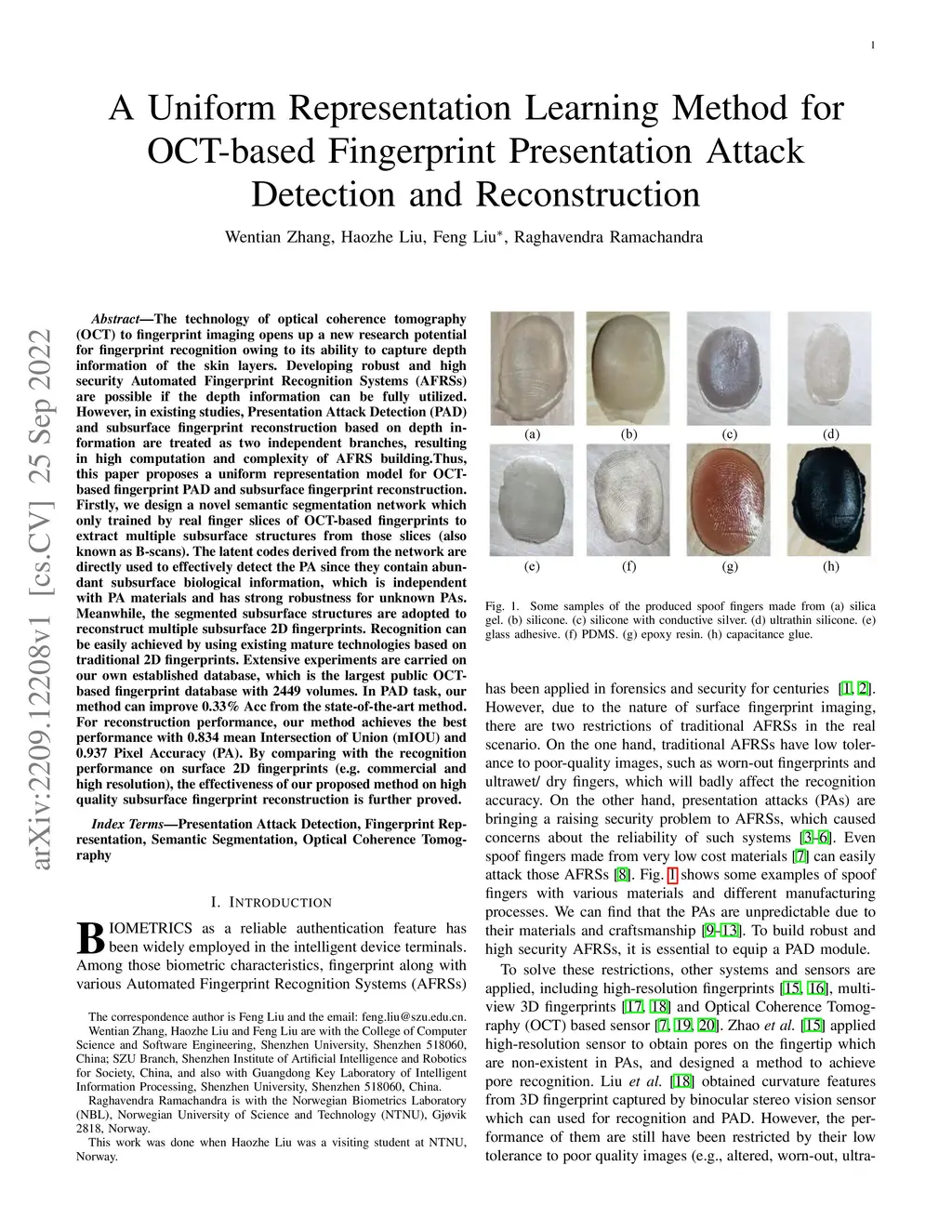 A Uniform Representation Learning Method for OCT-based Fingerprint