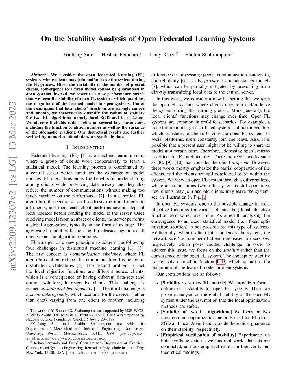 On the Stability Analysis of Open Federated Learning Systems