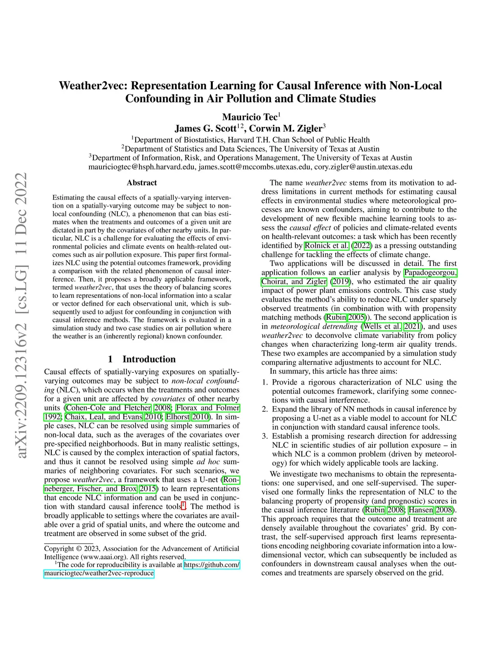 Weather2vec: Representation Learning for Causal Inference with Non-Local