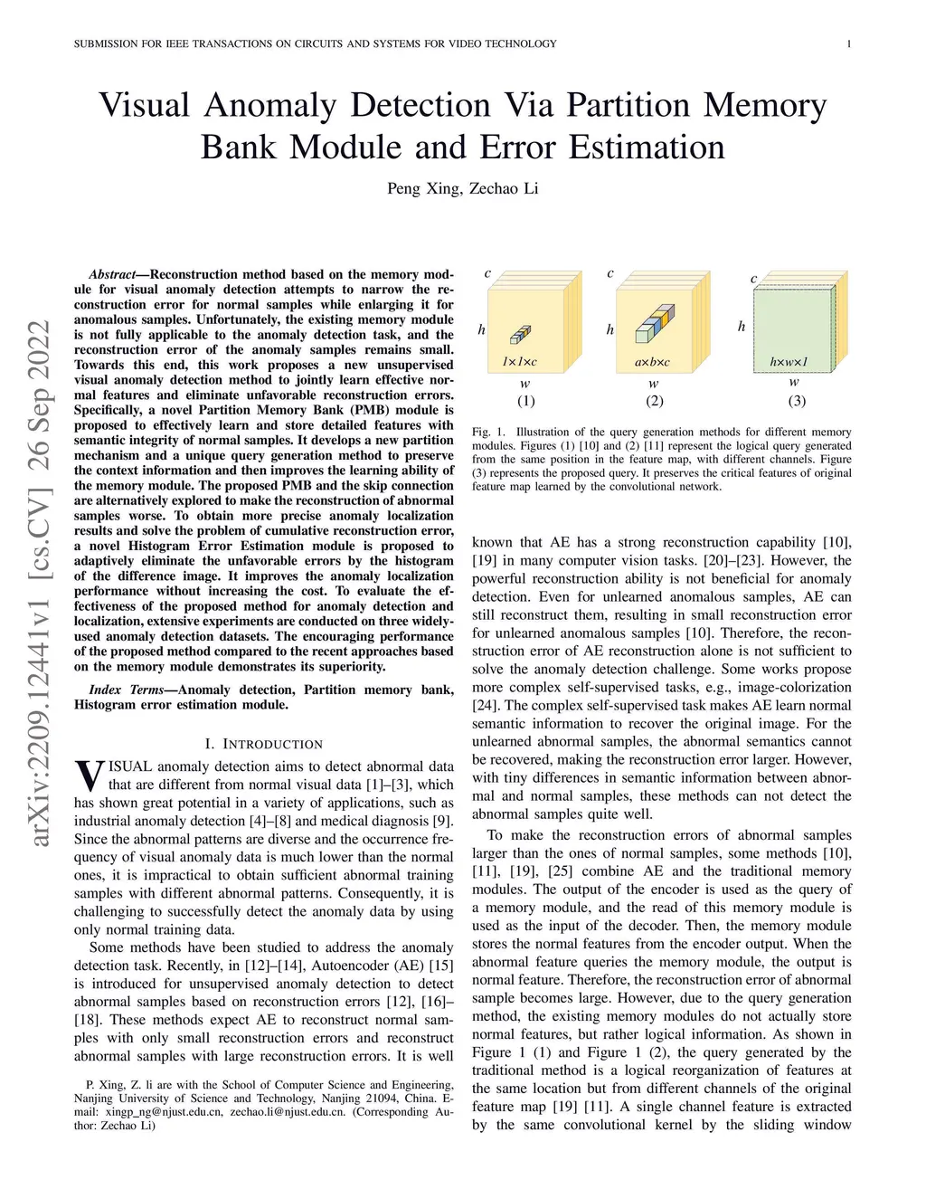 Visual Anomaly Detection Via Partition Memory Bank Module and Error