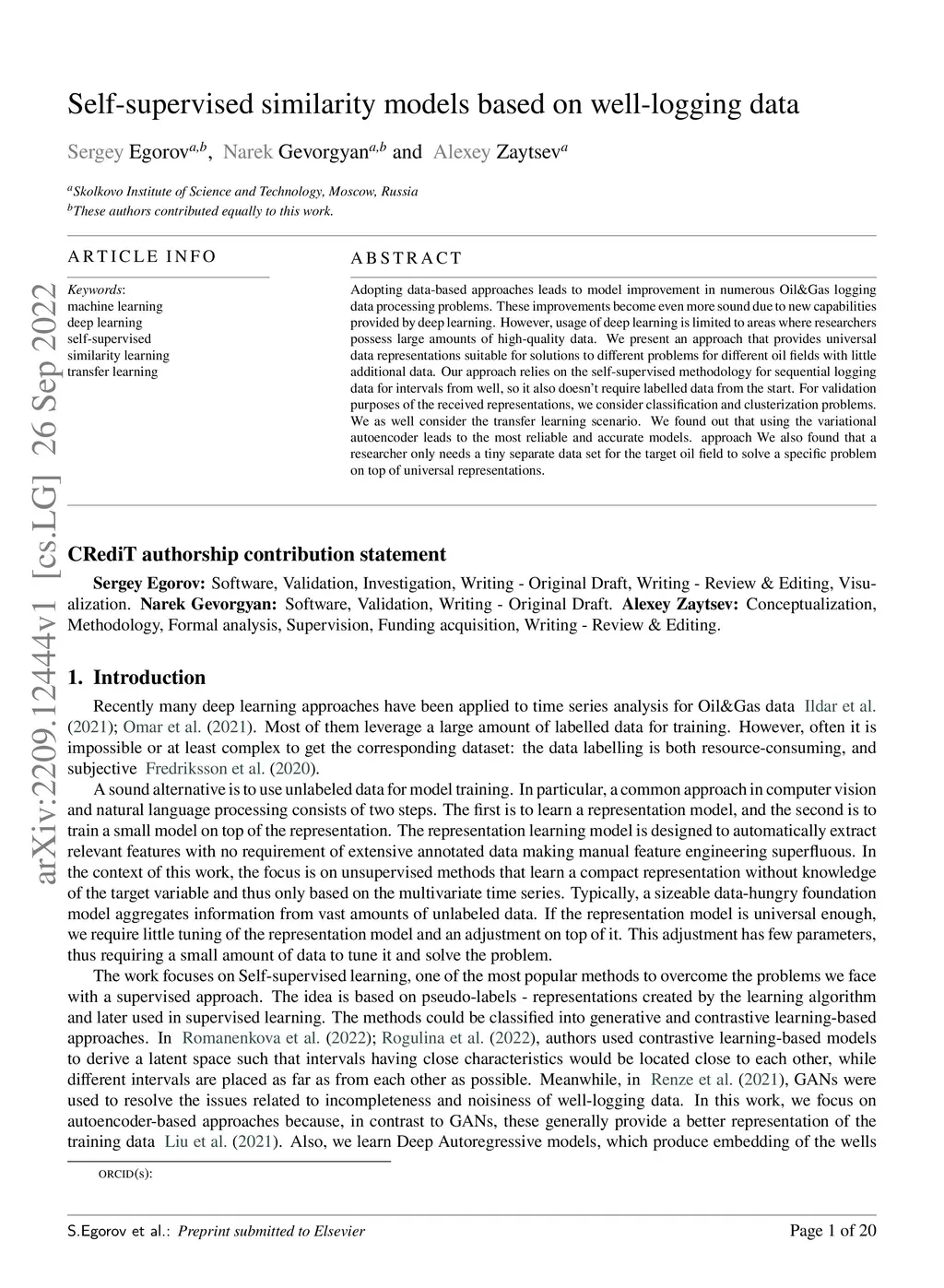 Self-supervised similarity models based on well-logging data