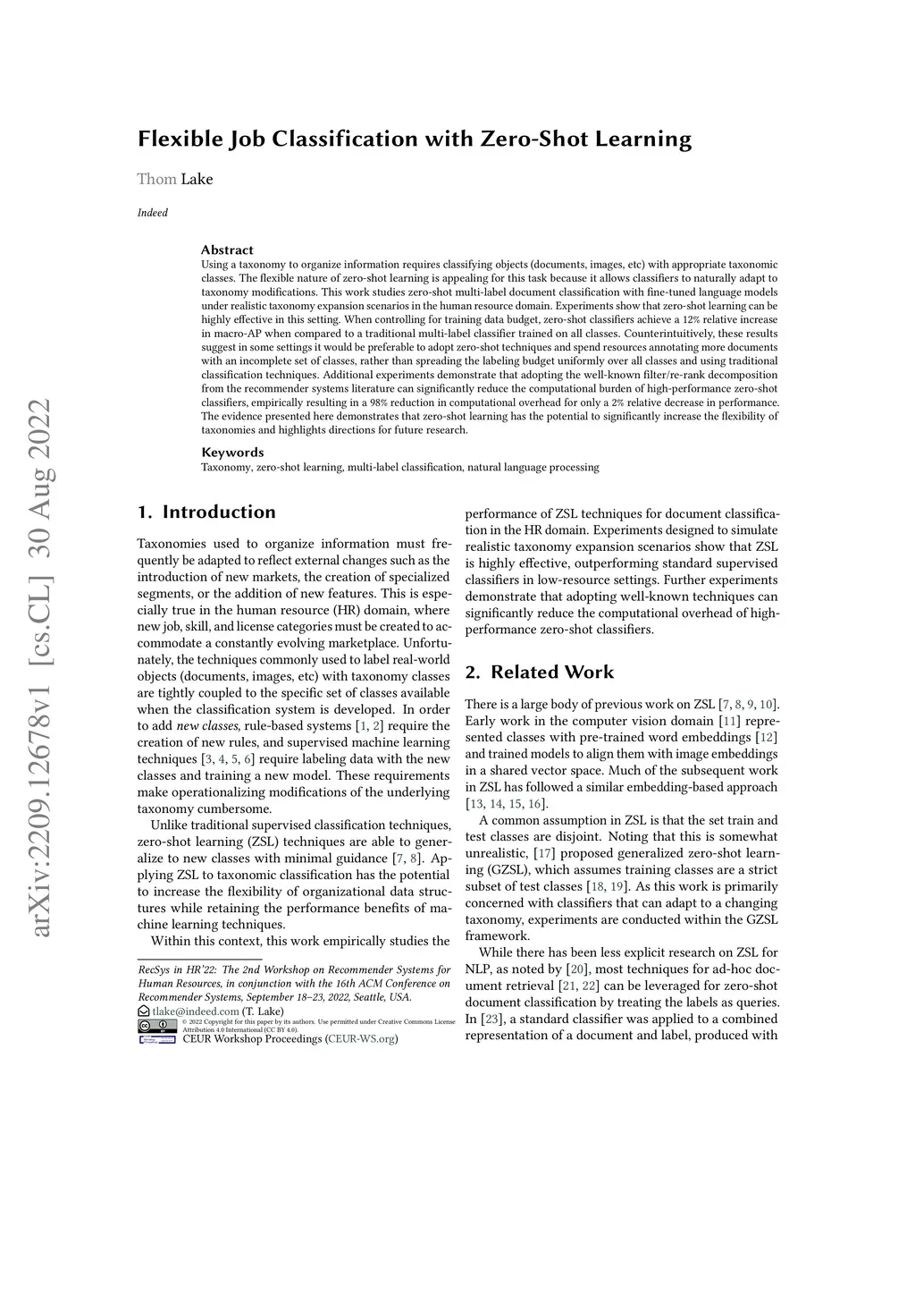 Flexible Job Classification with Zero-Shot Learning