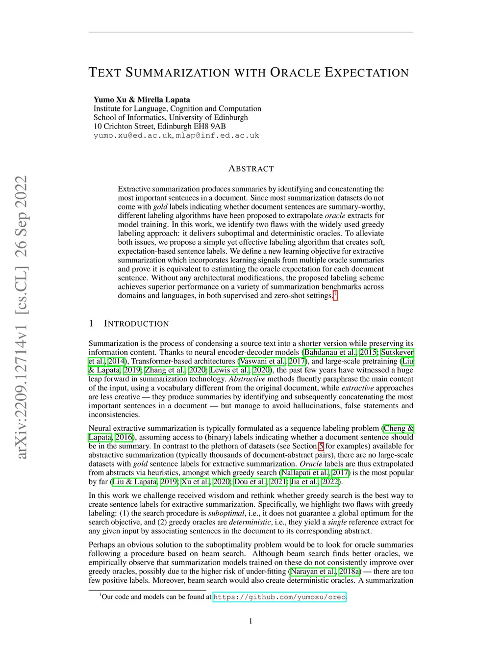 Text Summarization with Oracle Expectation