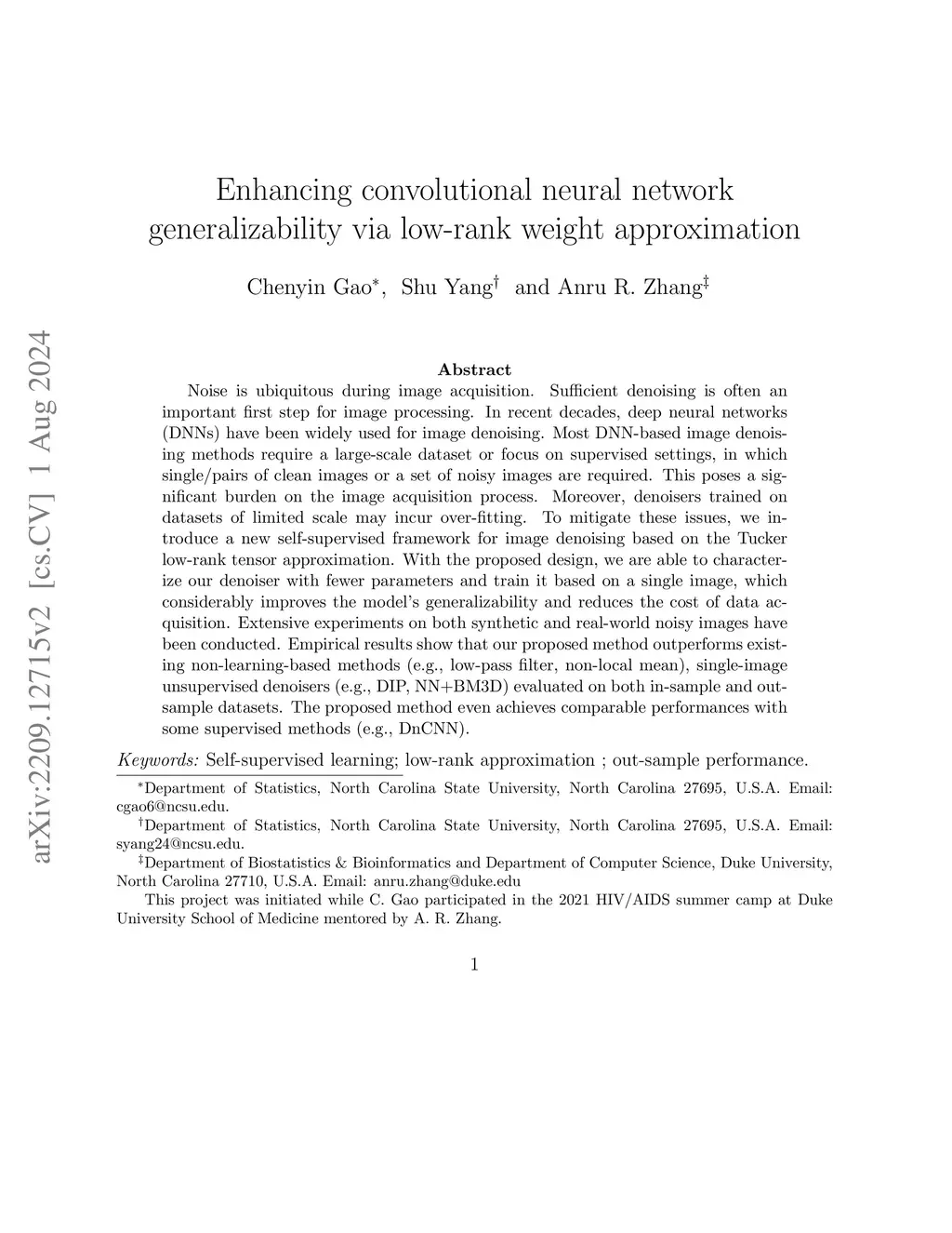 Self-supervised Denoising via Low-rank Tensor Approximated Convolutional