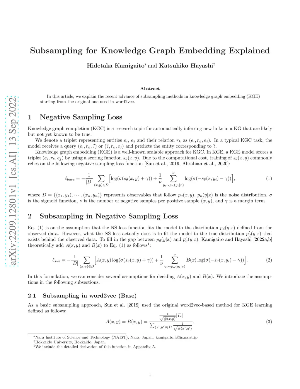 In this article, we explain the recent advance of subsampling methods in knowledge graph embedding (KGE) starting from the original one used in word2vec.