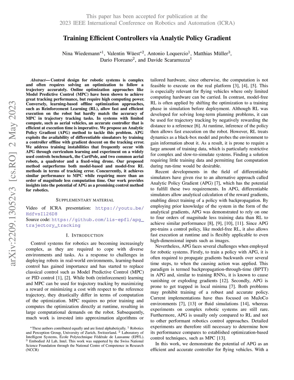 Training Efficient Controllers via Analytic Policy Gradient