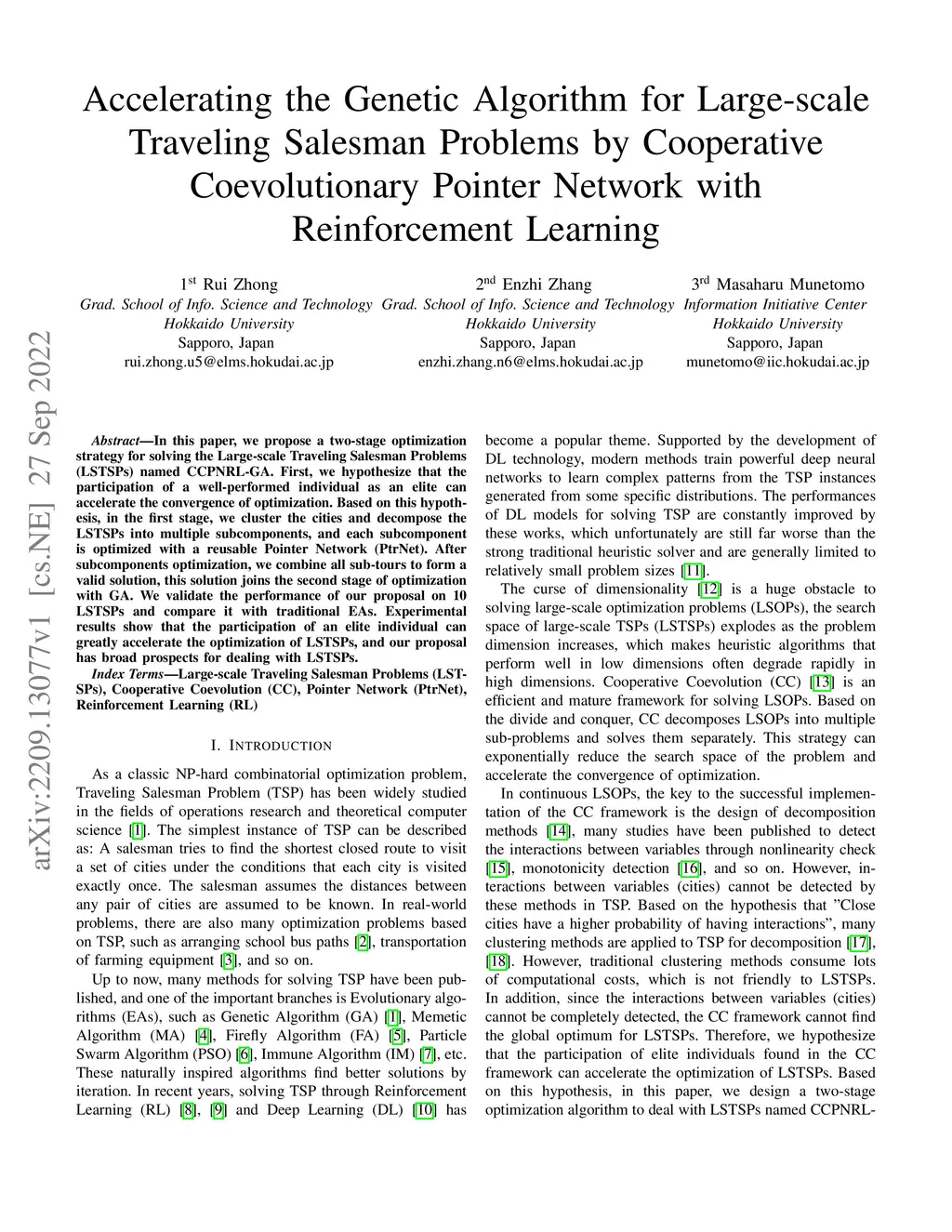 Problems by Cooperative Coevolutionary Pointer Network with Reinforcement