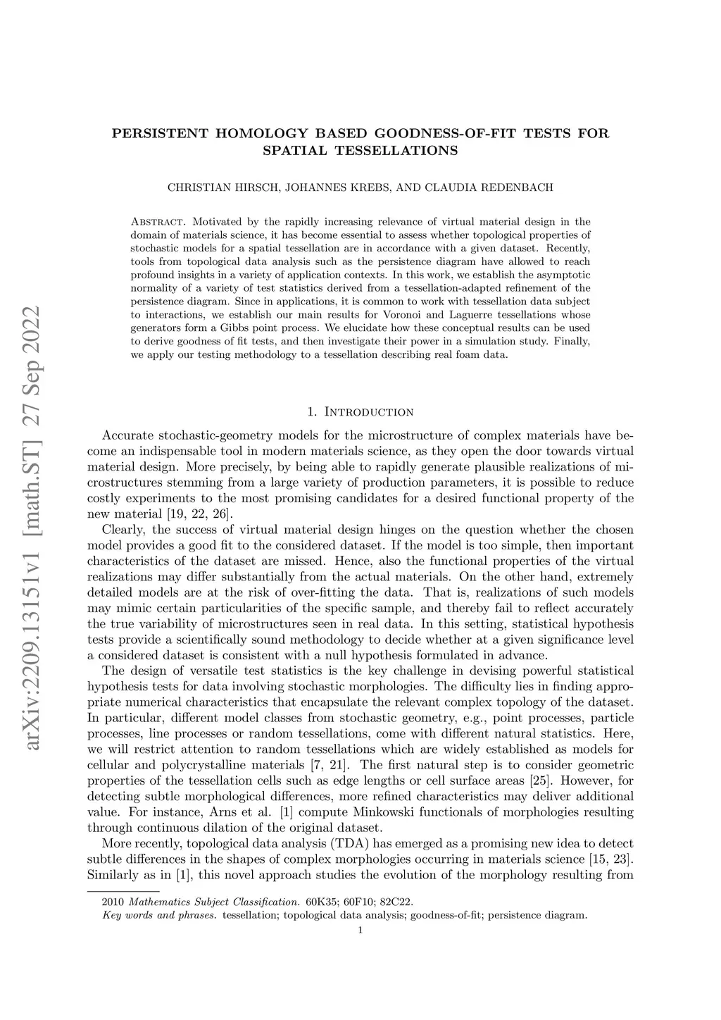 Motivated by the rapidly increasing relevance of virtual material design in the domain of materials science, it has become essential to assess whether topological properties of stochastic models for a spatial tessellation are in accordance with a given dataset. Recently, tools from topological data analysis such as the persistence diagram have allowed to reach profound insights in a variety of application contexts. In this work, we establish the asymptotic normality of a variety of test statistics derived from a tessellation-adapted refinement of the persistence diagram. Since in applications, it is common to work with tessellation data subject to interactions, we establish our main results for Voronoi and Laguerre tessellations whose generators form a Gibbs point process. We elucidate how these conceptual results can be used to derive goodness of fit tests, and then investigate their power in a simulation study. Finally, we apply our testing methodology to a tessellation describing real foam data.