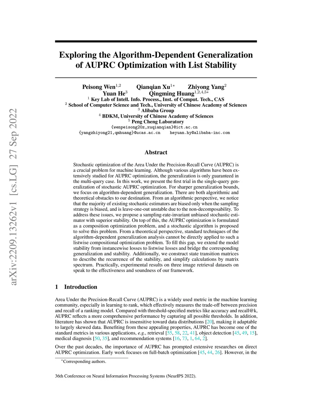 Stochastic optimization of the Area Under the Precision-Recall Curve (AUPRC) is a crucial problem for machine learning. Although various algorithms have been extensively studied for AUPRC optimization, the generalization is only guaranteed in the multi-query case. In this work, we present the first trial in the single-query generalization of stochastic AUPRC optimization. For sharper generalization bounds, we focus on algorithm-dependent generalization. There are both algorithmic and theoretical obstacles to our destination. From an algorithmic perspective, we notice that the majority of existing stochastic estimators are biased only when the sampling strategy is biased, and is leave-one-out unstable due to the non-decomposability. To address these issues, we propose a sampling-rate-invariant unbiased stochastic estimator with superior stability. On top of this, the AUPRC optimization is formulated as a composition optimization problem, and a stochastic algorithm is proposed to solve this problem. From a theoretical perspective, standard techniques of the algorithm-dependent generalization analysis cannot be directly applied to such a listwise compositional optimization problem. To fill this gap, we extend the model stability from instancewise losses to listwise losses and bridge the corresponding generalization and stability. Additionally, we construct state transition matrices to describe the recurrence of the stability, and simplify calculations by matrix spectrum. Practically, experimental results on three image retrieval datasets on speak to the effectiveness and soundness of our framework.