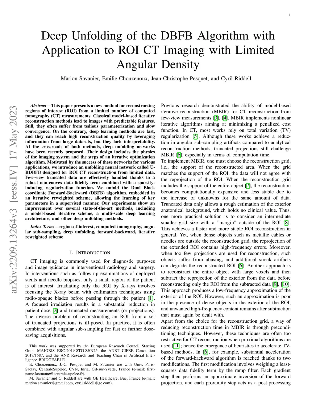 Deep Unfolding of the DBFB Algorithm with Application to ROI CT Imaging