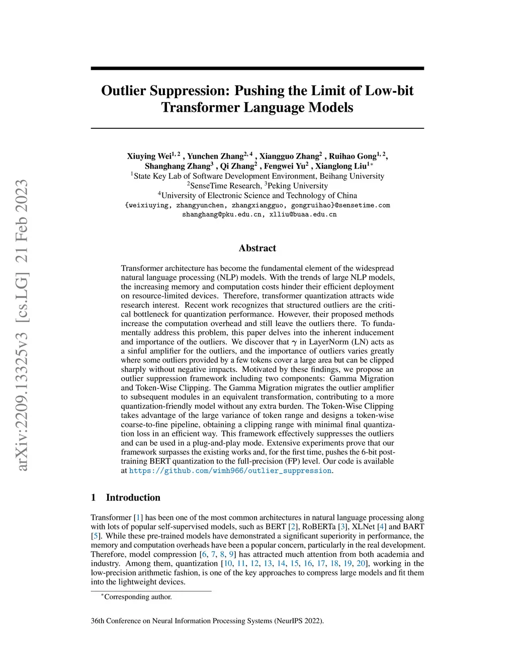 Outlier Suppression: Pushing the Limit of Low-bit Transformer Language