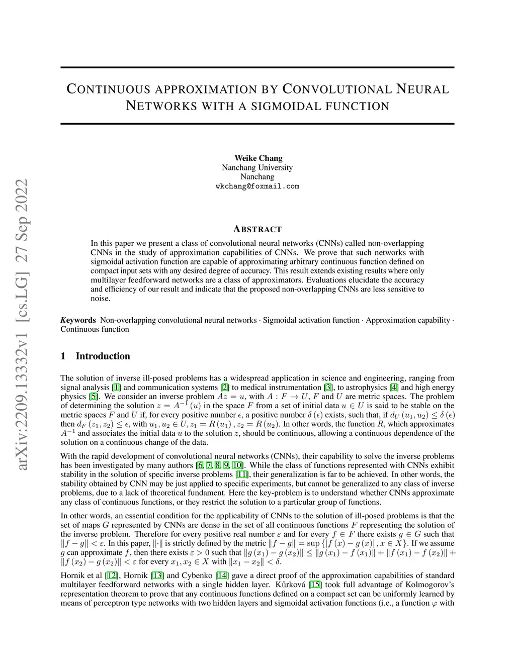 In this paper we present a class of convolutional neural networks (CNNs) called non-overlapping CNNs in the study of approximation capabilities of CNNs. We prove that such networks with sigmoidal activation function are capable of approximating arbitrary continuous function defined on compact input sets with any desired degree of accuracy. This result extends existing results where only multilayer feedforward networks are a class of approximators. Evaluations elucidate the accuracy and efficiency of our result and indicate that the proposed non-overlapping CNNs are less sensitive to noise.