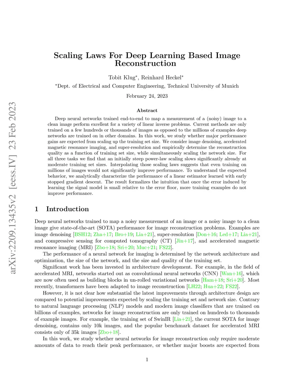 Scaling Laws For Deep Learning Based Image Reconstruction