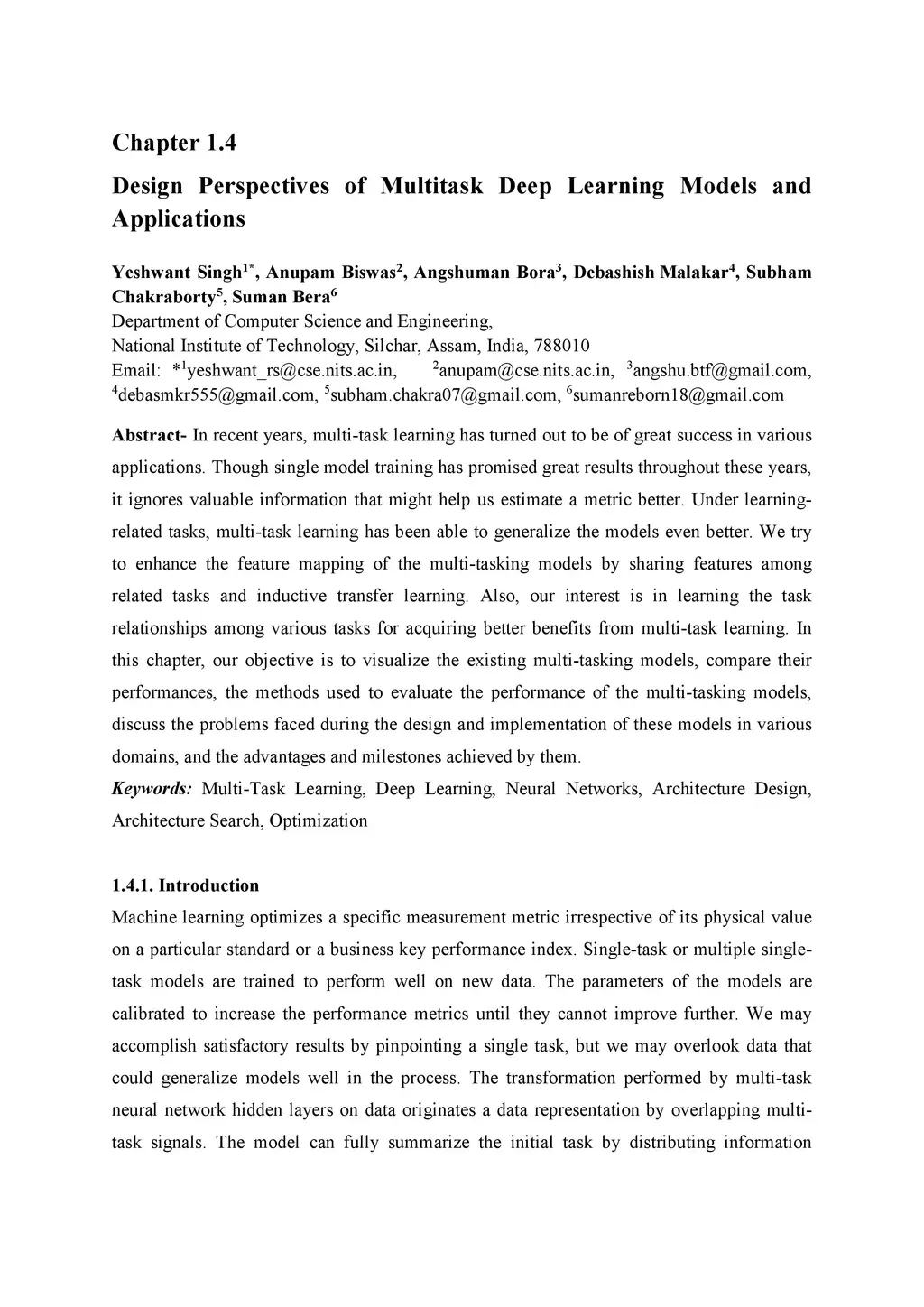 In recent years, multi-task learning has turned out to be of great success in various applications. Though single model training has promised great results throughout these years, it ignores valuable information that might help us estimate a metric better. Under learning-related tasks, multi-task learning has been able to generalize the models even better. We try to enhance the feature mapping of the multi-tasking models by sharing features among related tasks and inductive transfer learning. Also, our interest is in learning the task relationships among various tasks for acquiring better benefits from multi-task learning. In this chapter, our objective is to visualize the existing multi-tasking models, compare their performances, the methods used to evaluate the performance of the multi-tasking models, discuss the problems faced during the design and implementation of these models in various domains, and the advantages and milestones achieved by them