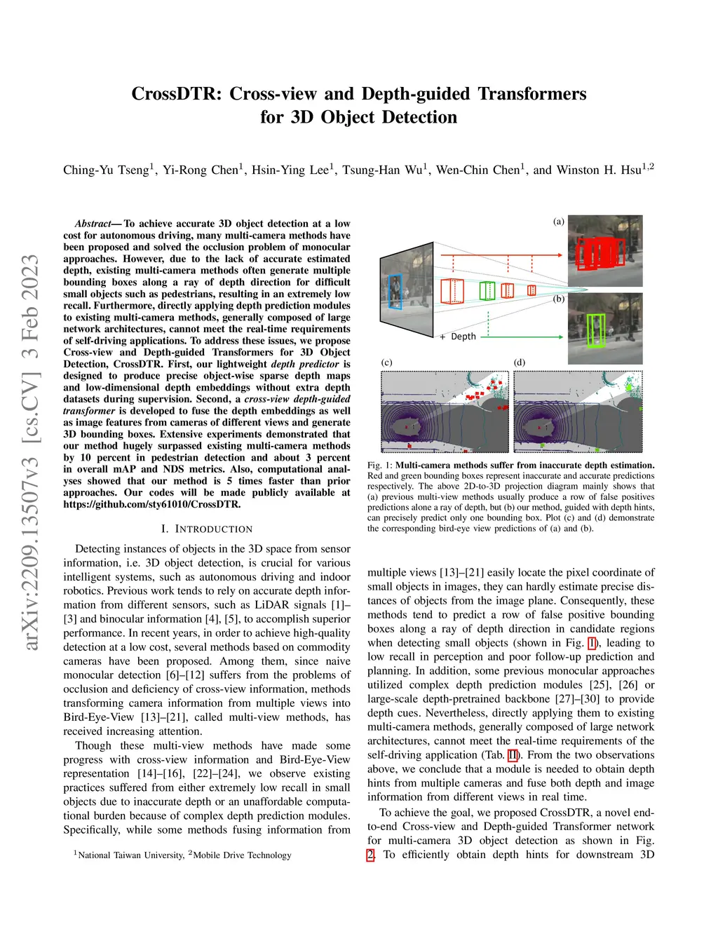 CrossDTR: Cross-view and Depth-guided Transformers for 3D Object