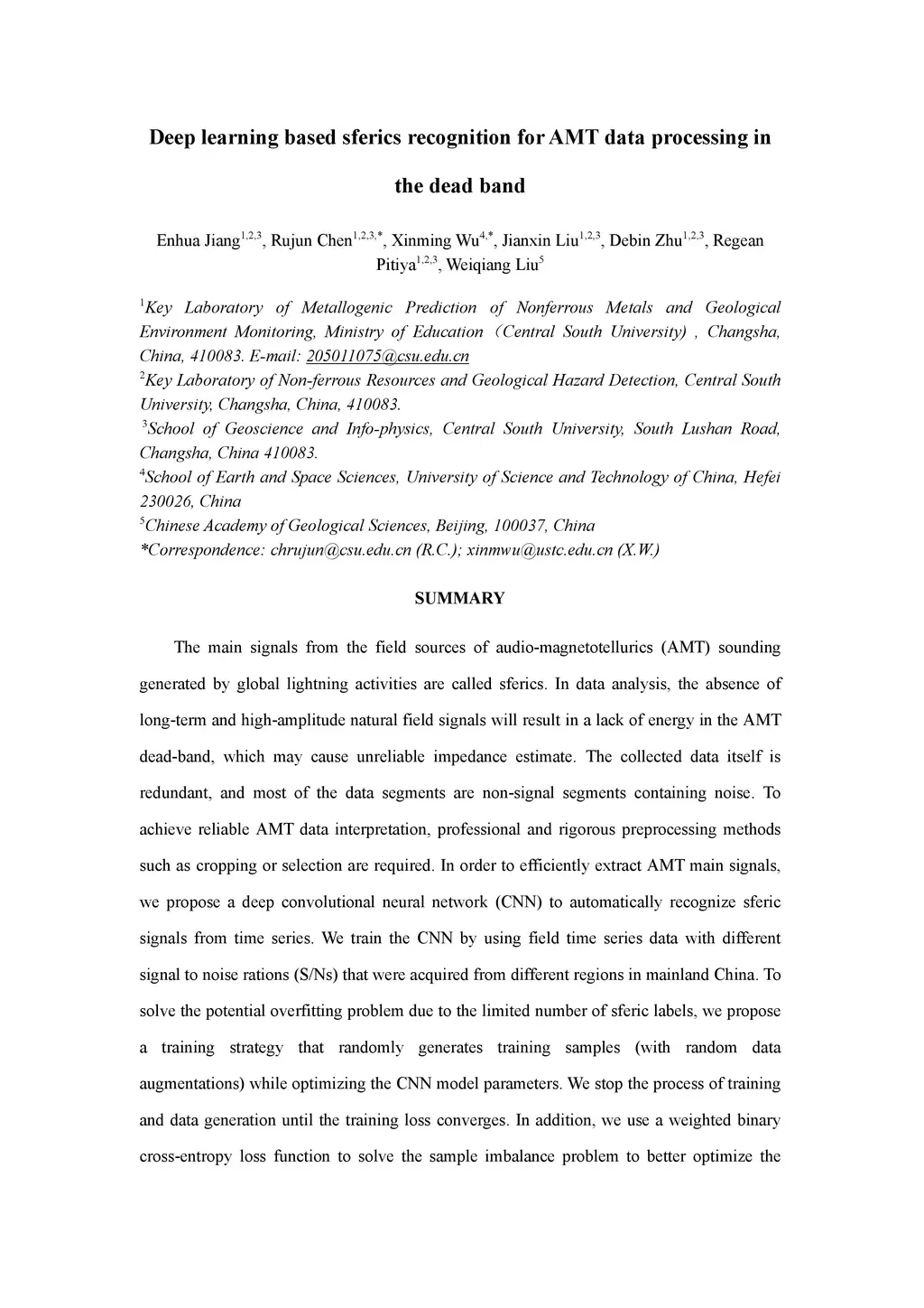 Deep learning based sferics recognition for AMT data processing in the