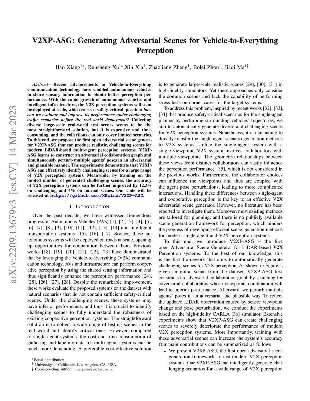 V2XP-ASG: Generating Adversarial Scenes for Vehicle-to-Everything