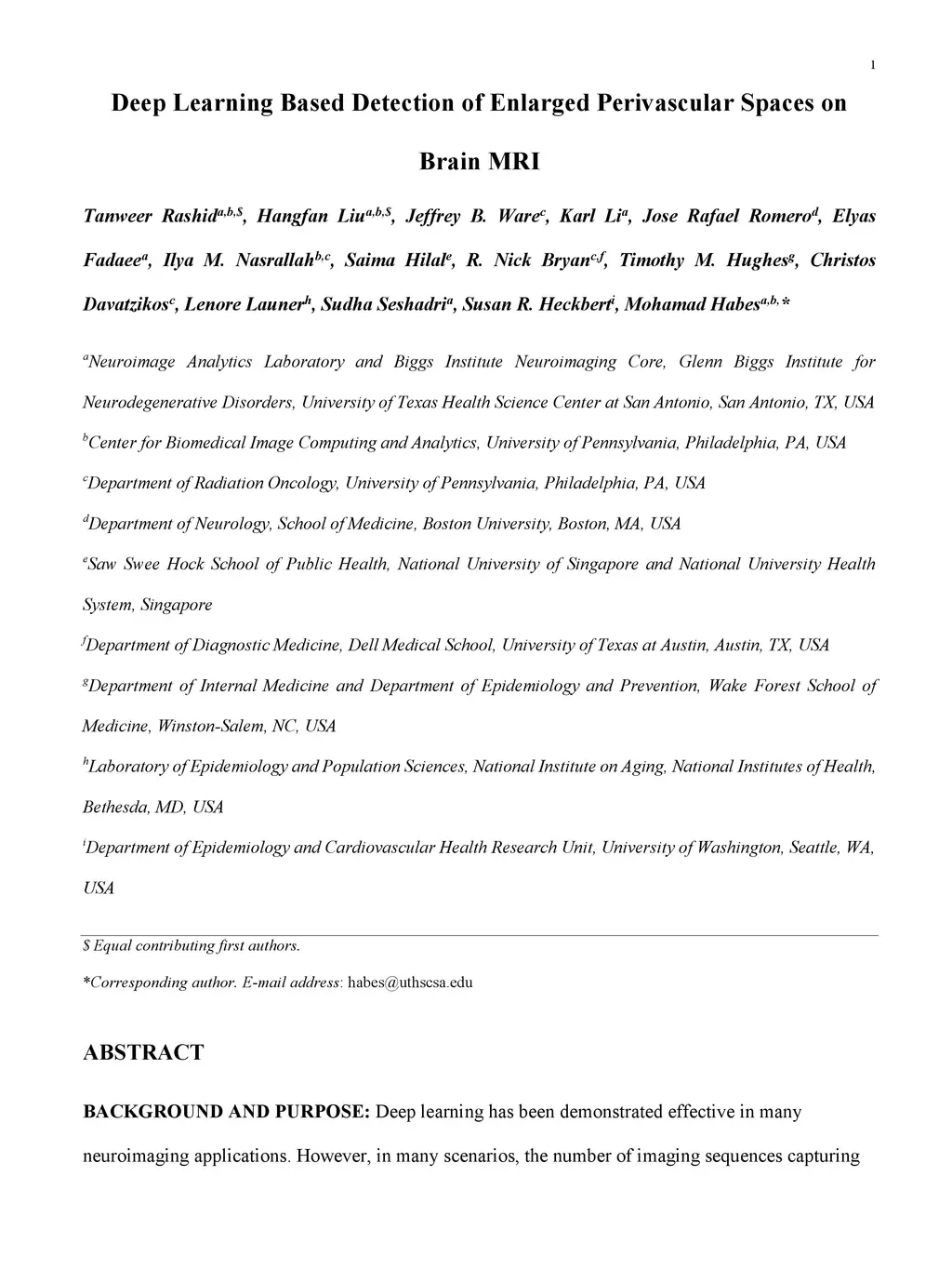 BACKGROUND AND PURPOSE: Deep learning has been demonstrated effective in many neuroimaging applications. However, in many scenarios, the number of imaging sequences capturing information related to small vessel disease lesions is insufficient to support data-driven techniques. Additionally, cohort-based studies may not always have the optimal or essential imaging sequences for accurate lesion detection. Therefore, it is necessary to determine which imaging sequences are crucial for precise detection. This study introduces a novel deep learning framework to detect enlarged perivascular spaces (ePVS) and aims to find the optimal combination of MRI sequences for deep learning-based quantification. MATERIALS AND METHODS: We implemented an effective lightweight U-Net adapted for ePVS detection and comprehensively investigated different combinations of information from SWI, FLAIR, T1-weighted (T1w), and T2-weighted (T2w) MRI sequences. The training data included 21 participants, which were randomly selected from the MESA cohort. Participants had ePVS 683 lesions on average. For T1w, T2w, and FLAIR images, the MESA study collected 3D isotropic MRI scans at six different sites with Siemens scanners. Our training data included participants from all these sites and all the scanner models, and the proposed model was applied to the whole brain instead of selective regions. RESULTS: The experimental results showed that T2w MRI is the most important for accurate ePVS detection, and the incorporation of SWI, FLAIR and T1w MRI in the deep neural network had minor improvements in accuracy and resulted in the highest sensitivity and precision (sensitivity =0.82, precision =0.83). The proposed method achieved comparable accuracy at a minimal time cost compared to manual reading.