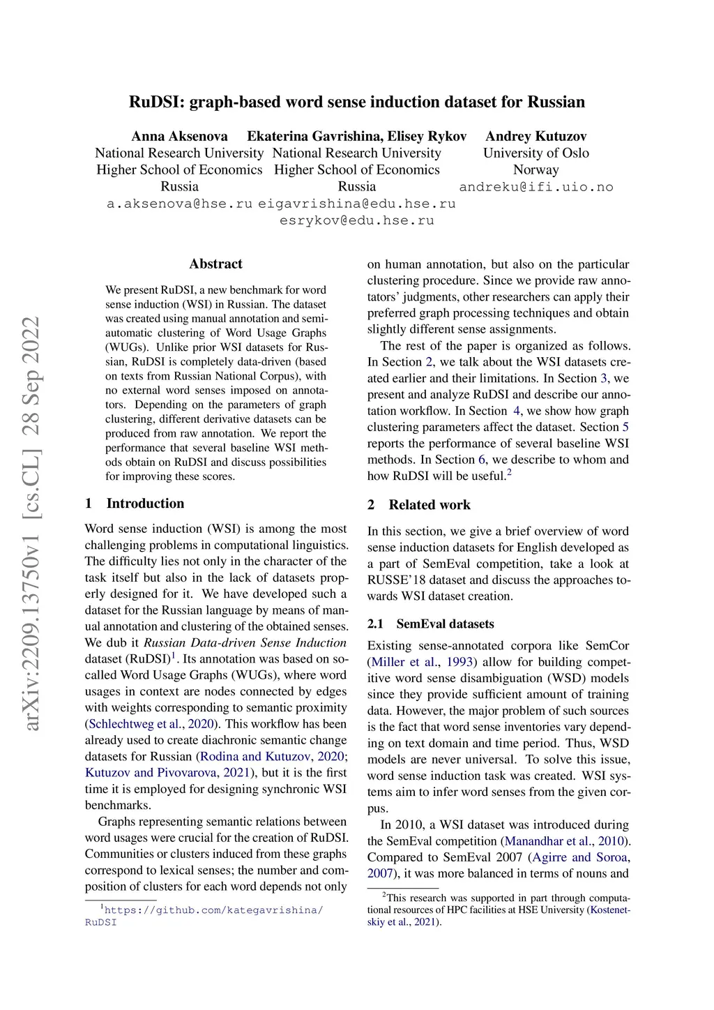 We present RuDSI, a new benchmark for word sense induction (WSI) in Russian. The dataset was created using manual annotation and semi-automatic clustering of Word Usage Graphs (WUGs). Unlike prior WSI datasets for Russian, RuDSI is completely data-driven (based on texts from Russian National Corpus), with no external word senses imposed on annotators. Depending on the parameters of graph clustering, different derivative datasets can be produced from raw annotation. We report the performance that several baseline WSI methods obtain on RuDSI and discuss possibilities for improving these scores.