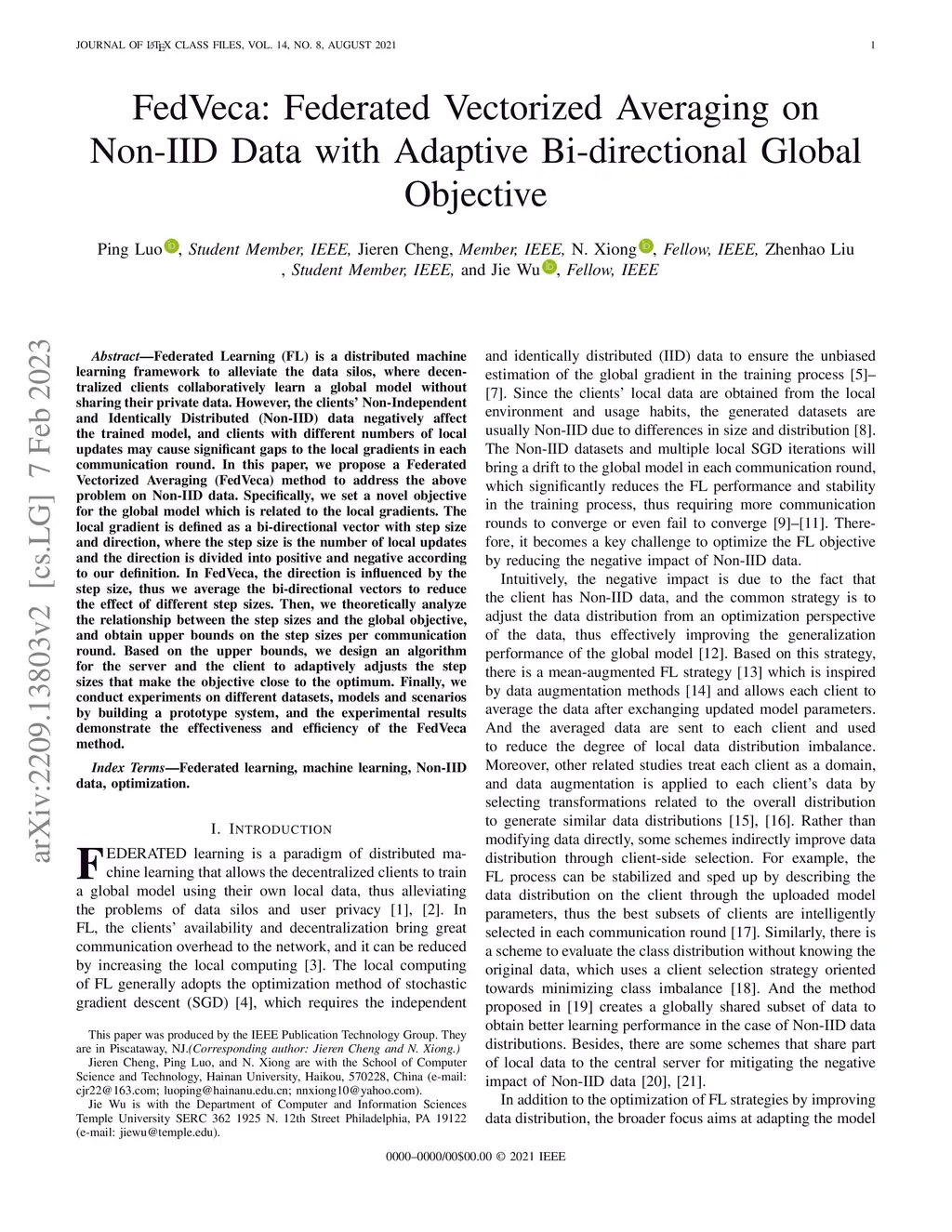 FedVeca: Federated Vectorized Averaging on Non-IID Data with Adaptive