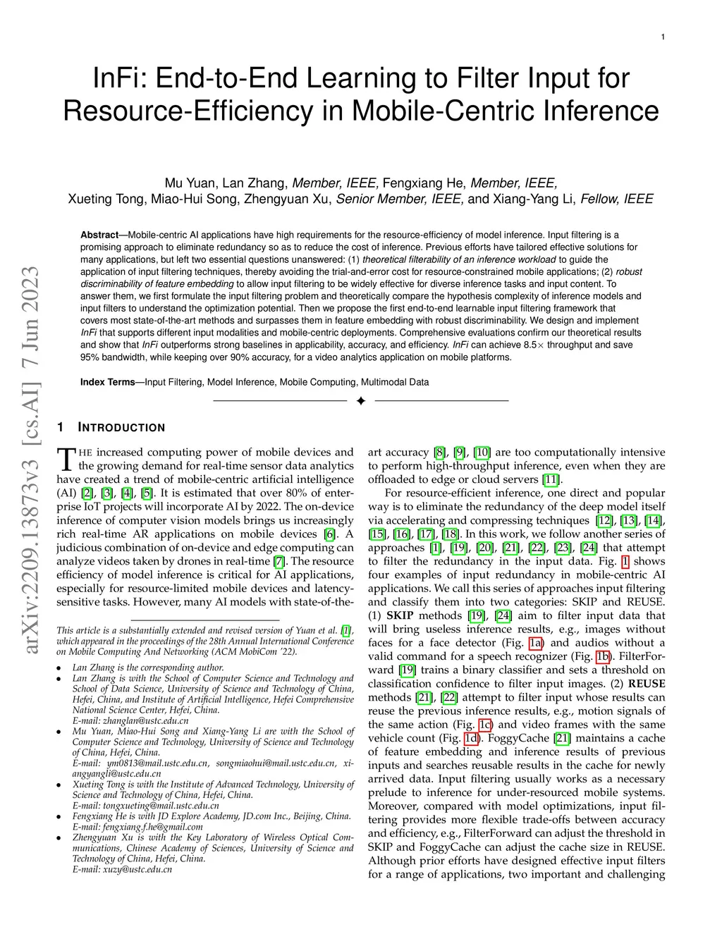 InFi: End-to-End Learning to Filter Input for Resource-Efficiency in